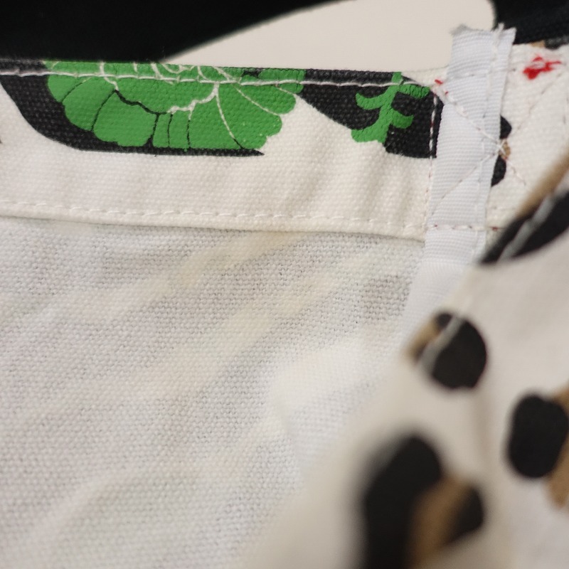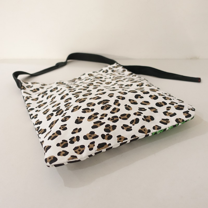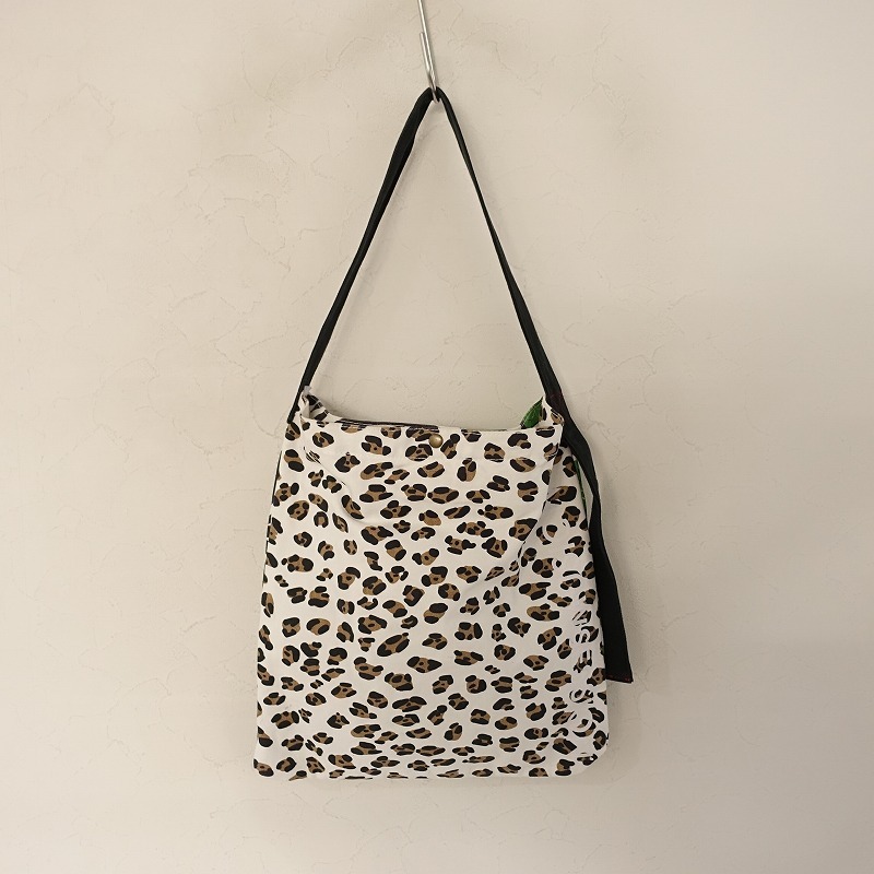 N.Jamのキャンバススモールバッグです。カラーはホワイトベースで片側はレオパード柄、片側はゼブラ柄にグリーンのフラワープリントが施されております。開口はスナップボタン留めで、内側にファスナーポケットが1個ございます。 |