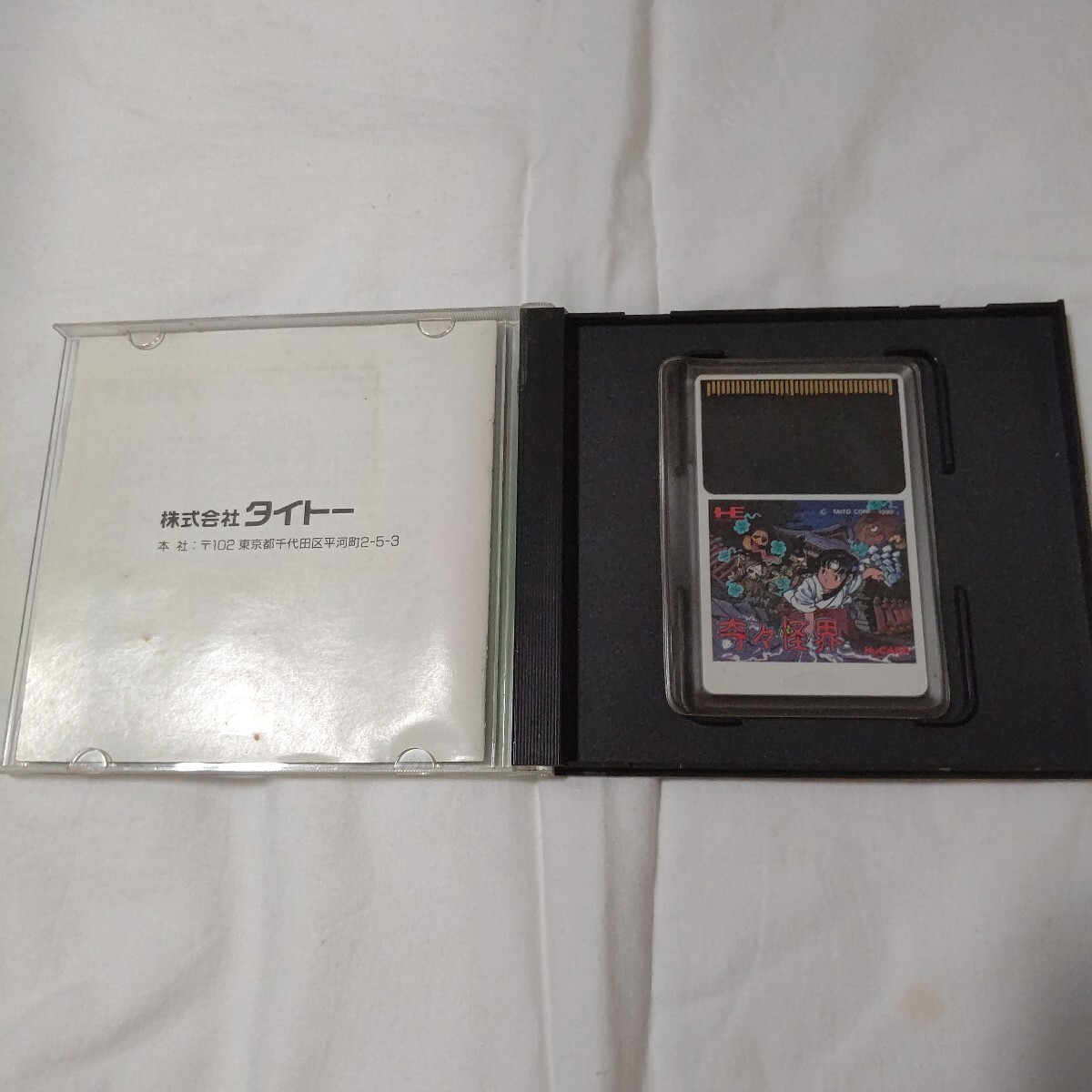 カードは状態良好。取説裏表紙、点のシミ。外ケースはラベルのスレ、へこみあり(画像参照)。