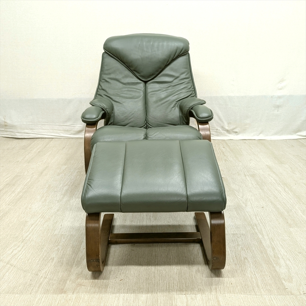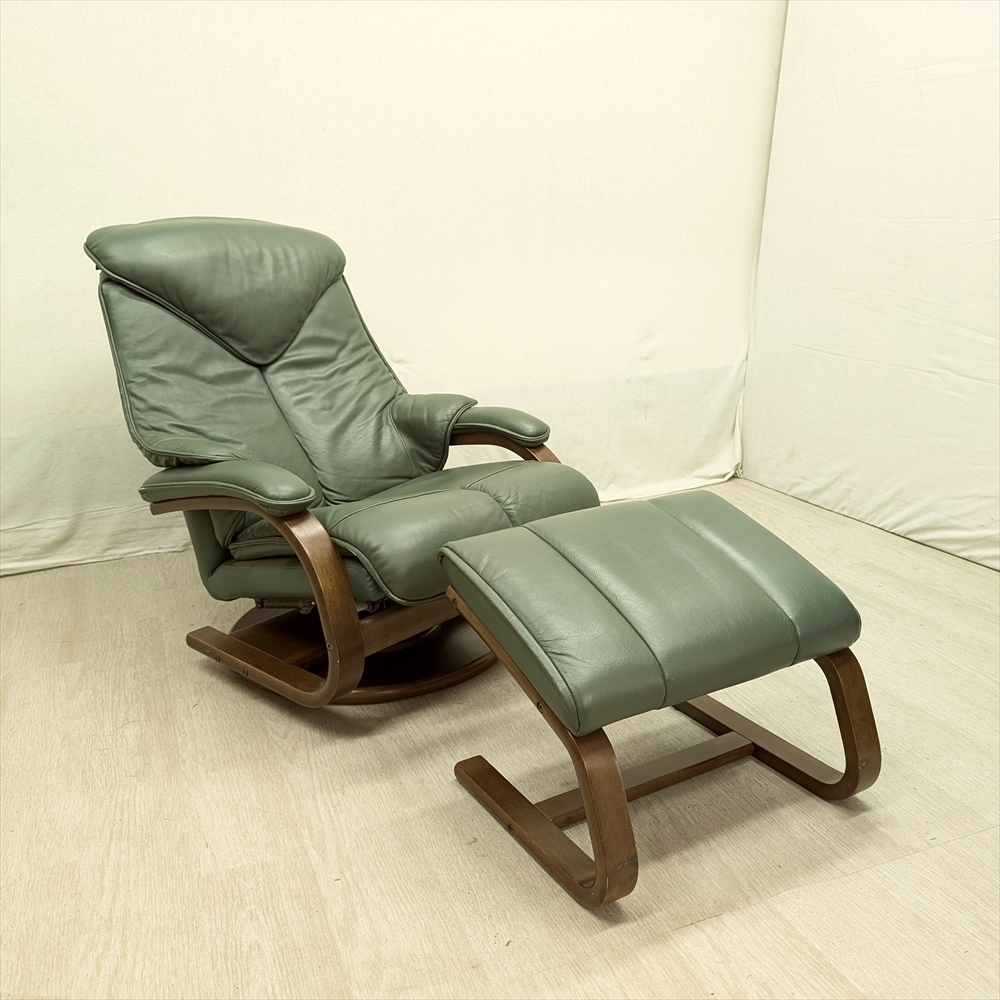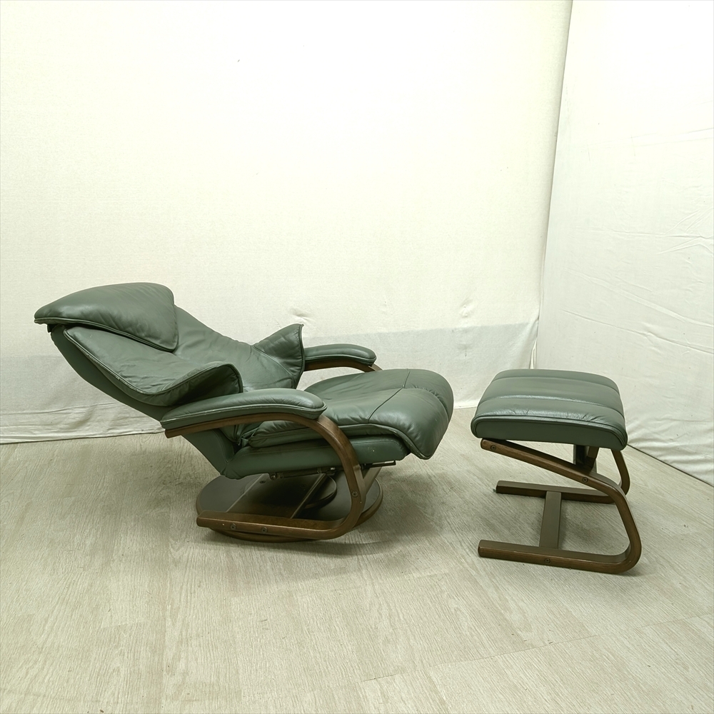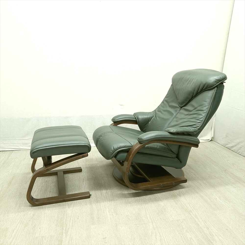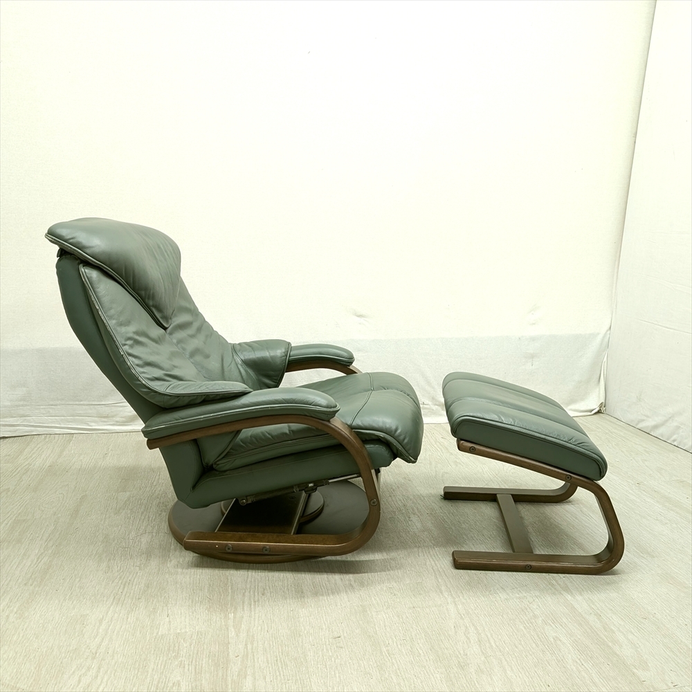 ★FUJI FUNITURE フジファニチア 冨士★本革★ リクライニングチェア オットマン パーソナルチェア ソファ 一人掛け 回転式 モダン