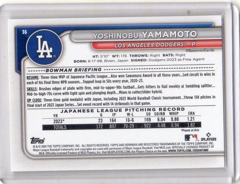 ★☆山本由伸 カード Vol.5 2024BOWMAN #36 ルーキー☆★ | |