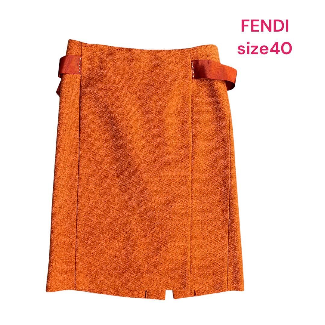 美品 FENDI フェンディ 落ち着いたオレンジのおリボン付き素敵なスカート M4I455