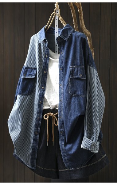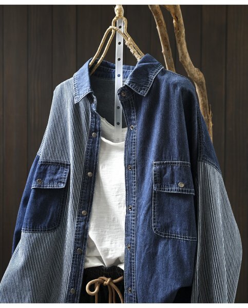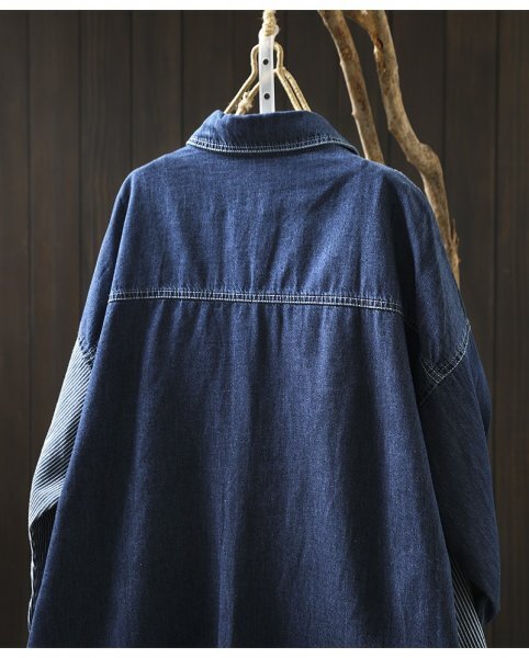 mn 2502 縫い合わせ デニム生地 ジーンズ カーディガン 羽織物 ゆったり オシャレフリーサイズ ナチュラル 綿100% 濃い色