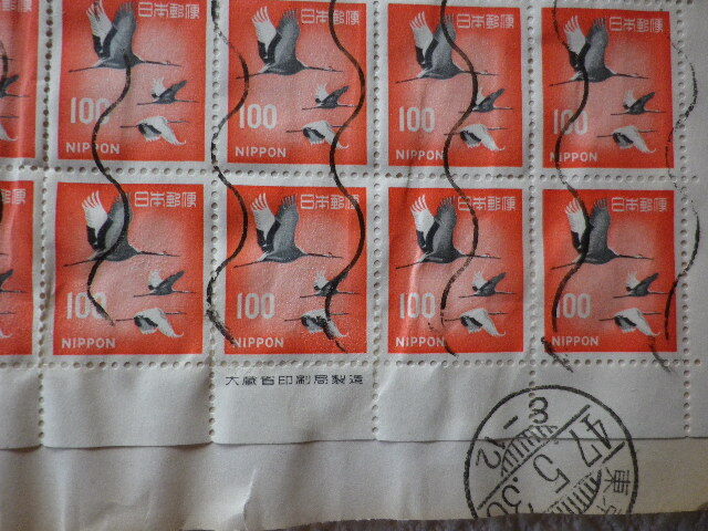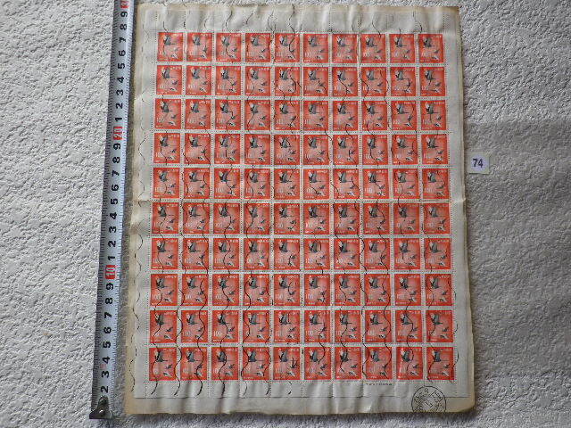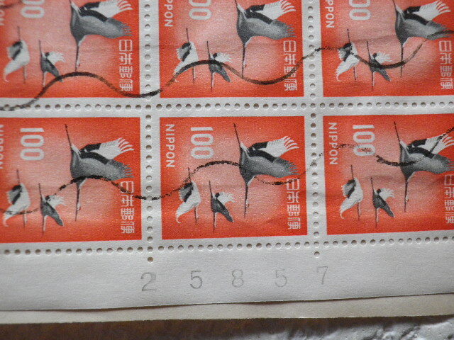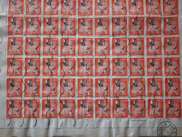 昭和の通常切手シート全面押印 100円丹頂 東京47.5.30●74●ヨレあり 同梱大歓迎