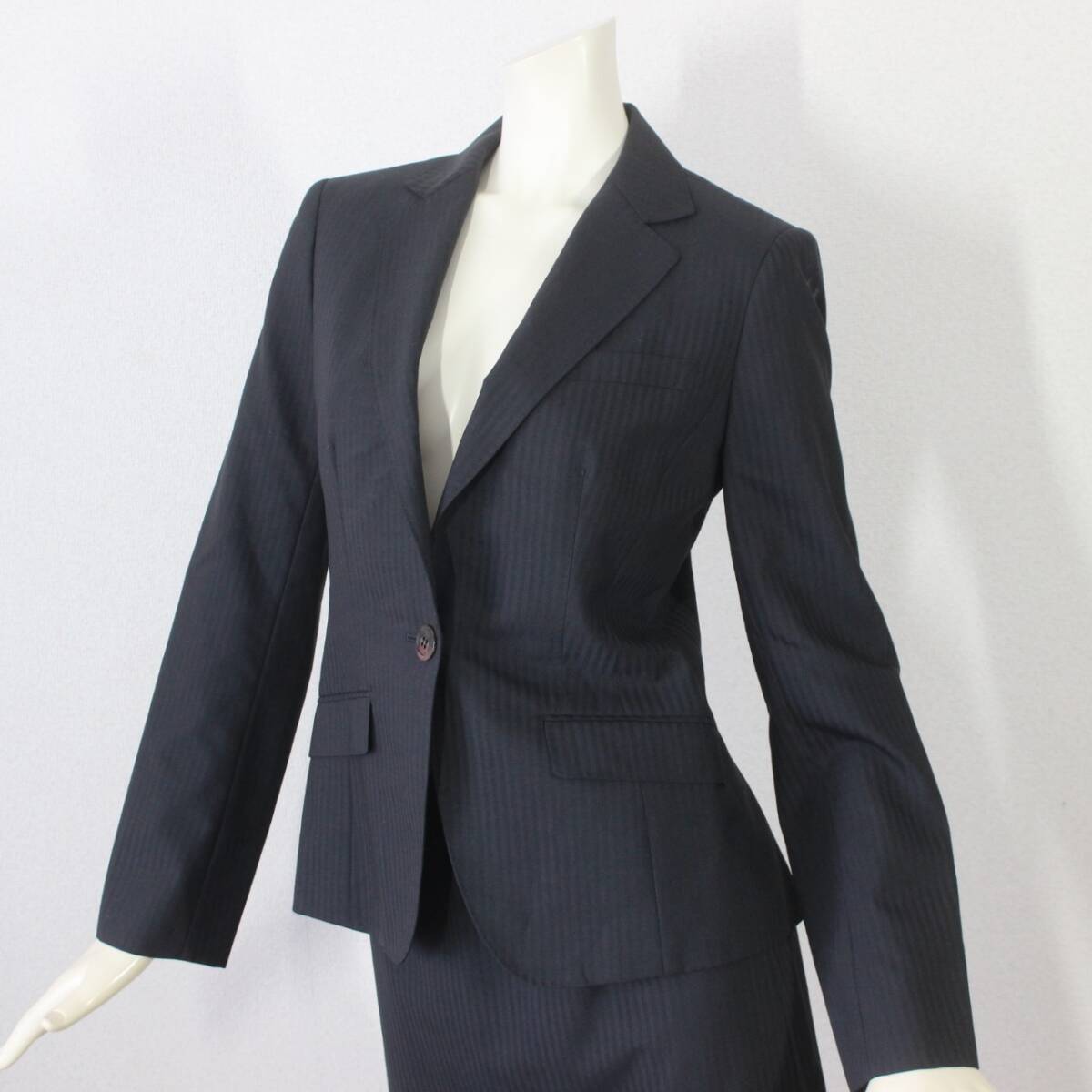 02【極美品】ポール スチュアート スカートスーツ 9 ブラック 黒 シャドウストライプ M セットアップスーツ 面接 ビジネス tqe Paul Stuart