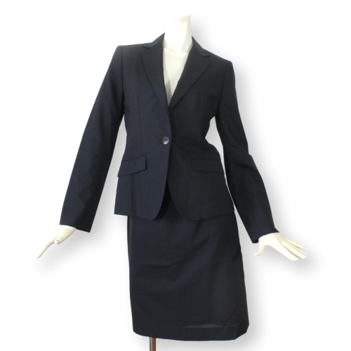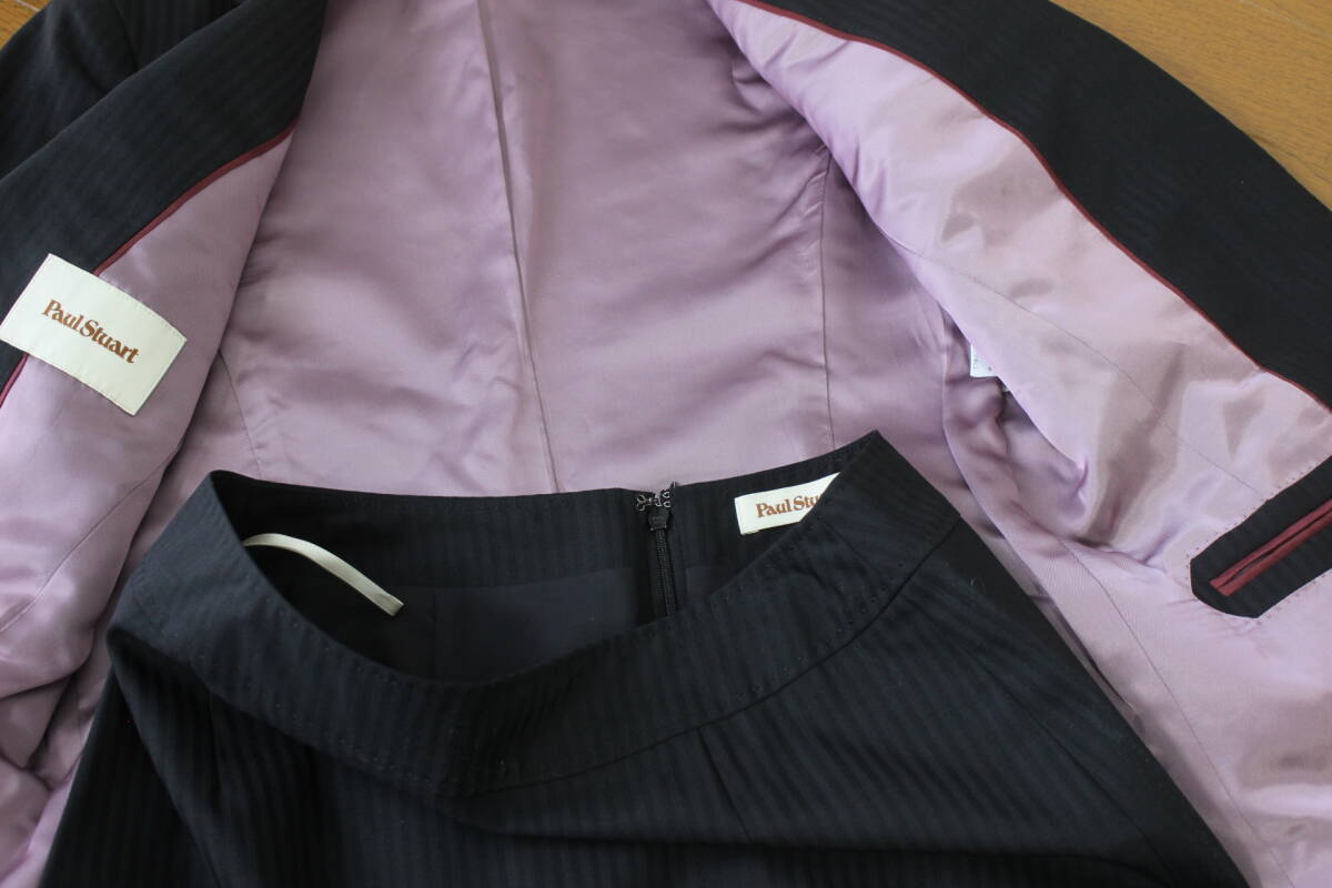 【極美品】Paul Stuart(ポール・スチュアート)スカートスーツ/ブラック シャドウストライプ/日本製/サイズ9号