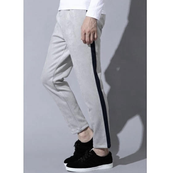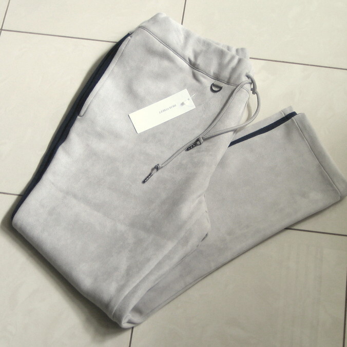 1.6万 新品 ハイストリート L Eスエードサイドラインパンツ グレー×ネイビー サンプル 488