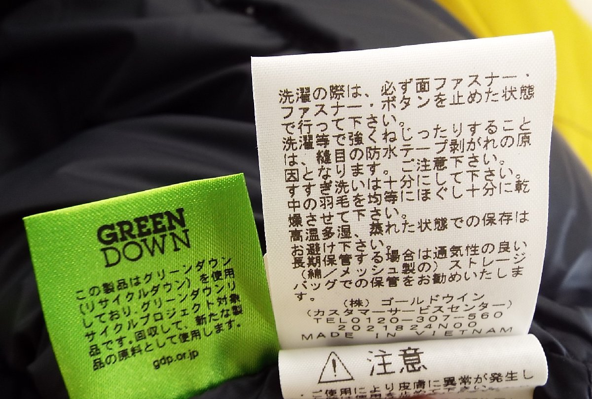 表地:ナイロン 100%(レーティング等樹脂加工) 中わた:ダウン 80%、フェザー 20% 裏地:ナイロン 100% |