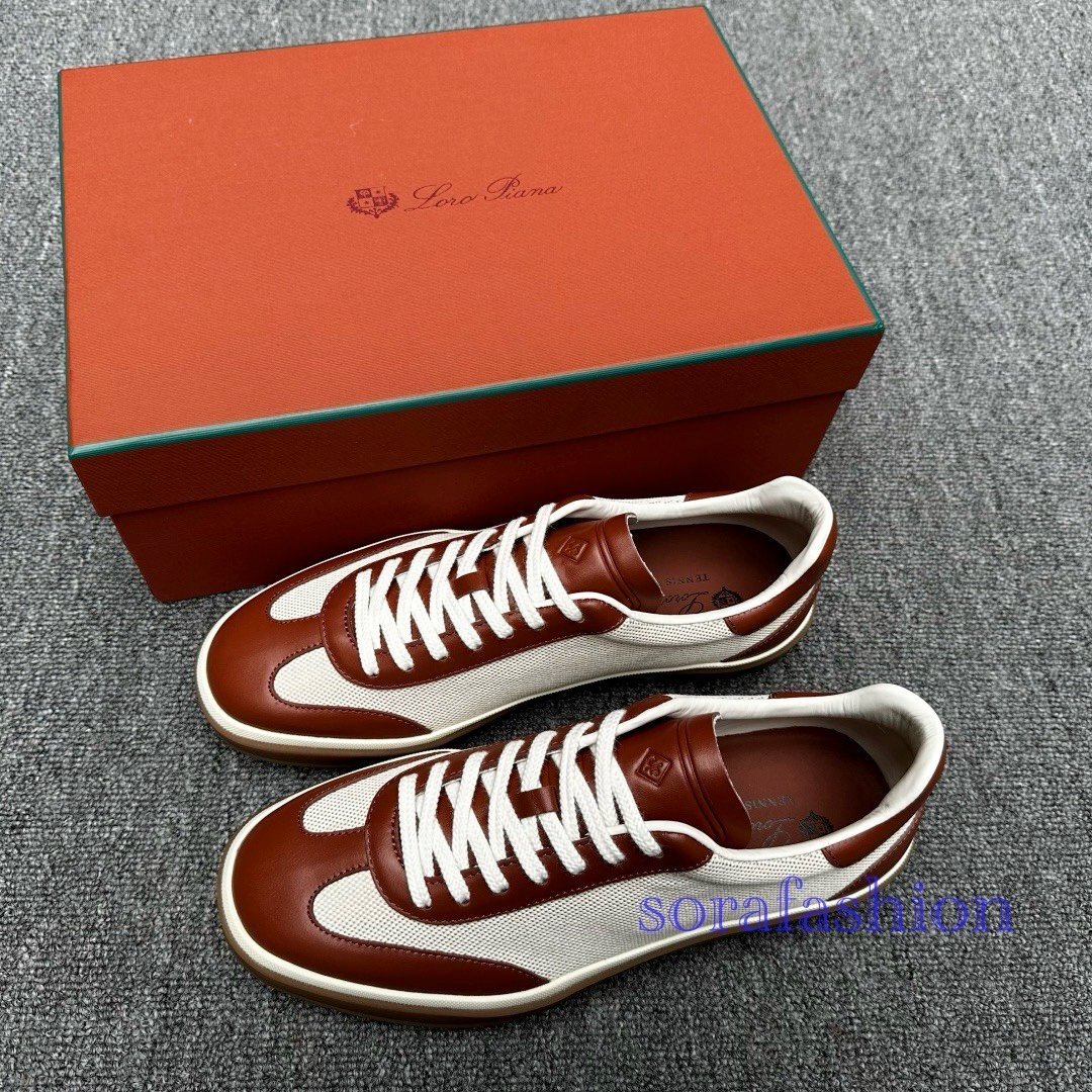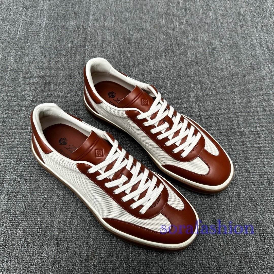Loro Piana ロロピアーナ メンズスニーカー ウォーキングシューズ ブラウン EU39サイズ 本革 メッシュ ローカット スポーツ 紳士靴 通気性