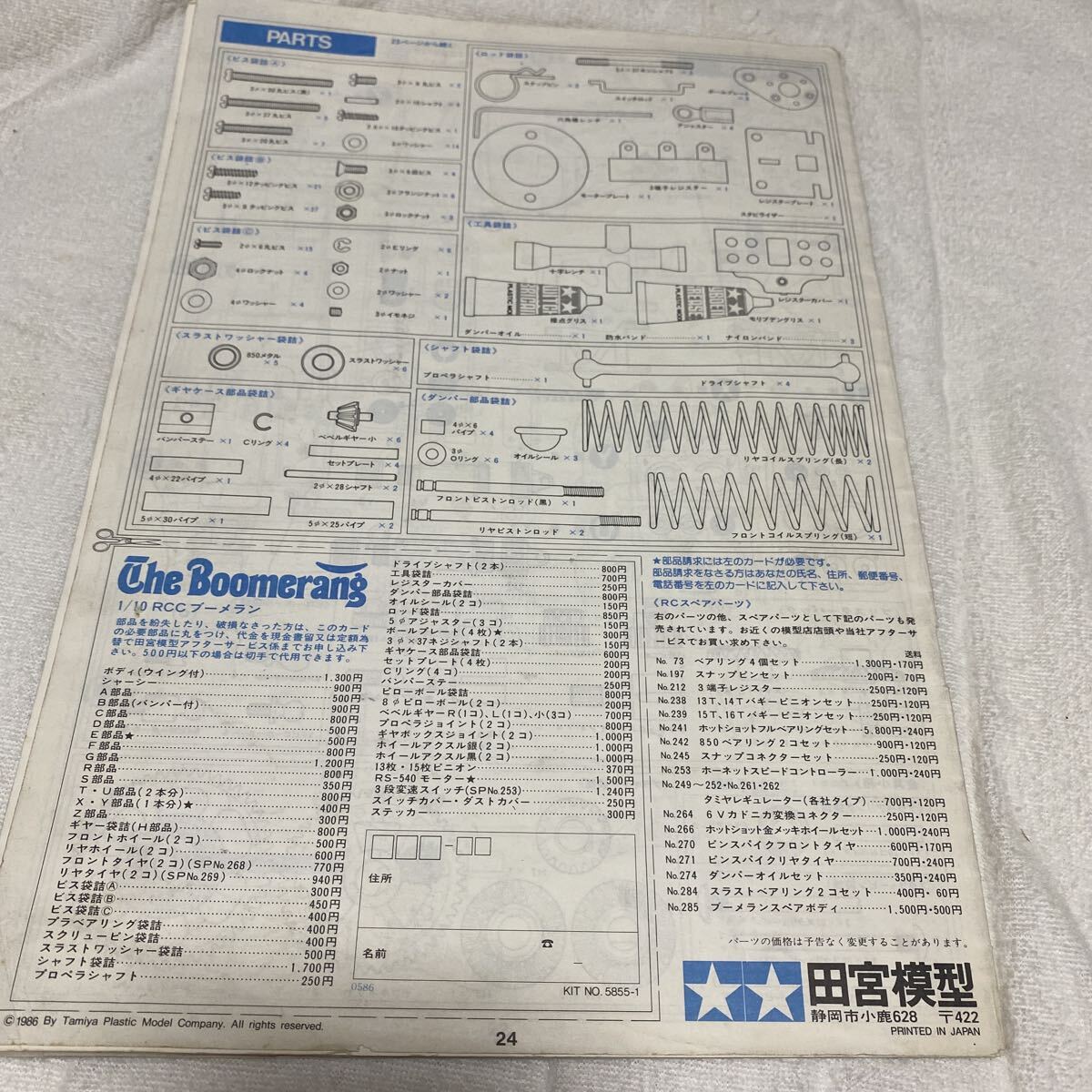 タミヤ 1/10 The Boomerang ブーメラン 組立説明書 当時物 tamiya