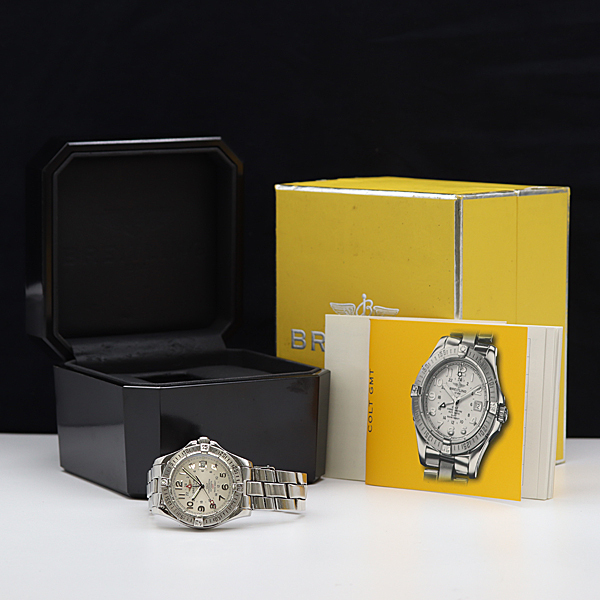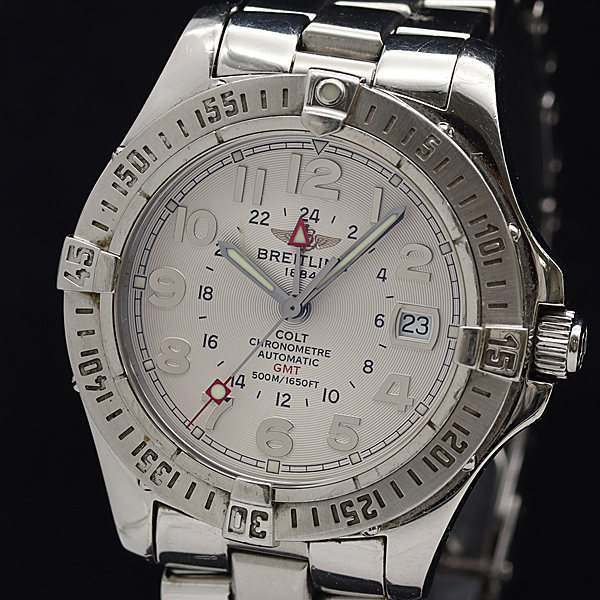 1円 箱付 稼働 ブライトリング コルトGMT A32350 AT/自動巻 シルバー文字盤 メンズ腕時計 0045210 9MGT SMZ