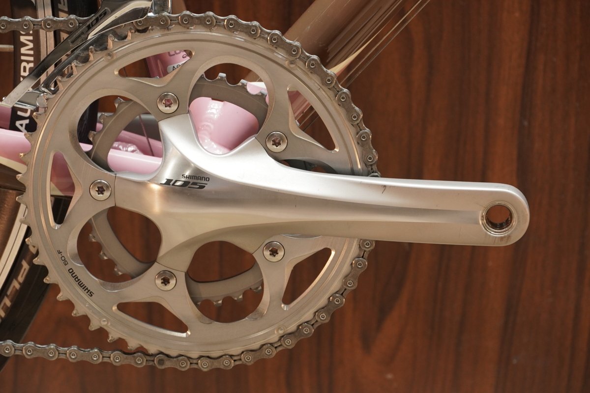 年式:2011 フレーム:アルミ フォーク:カーボン メインコンポ:SHIMANO 105 5700 2X10S クランク:SHIMANO 105 FC 5750 170mm 50T;34T ホイール:ORIGINAL タイヤ:700 X 25C スプロケット:10S 11T:28T ハンドル幅:360mm ステム長:80mm サイズ:465 トップチューブ長(C-C):530mm (※ホリゾンタル換算値) シートチューブ長(C-T):465mm 適応身長:165cm ~175cm程度 実測重量:8,95kg ※掲載画像状態 |