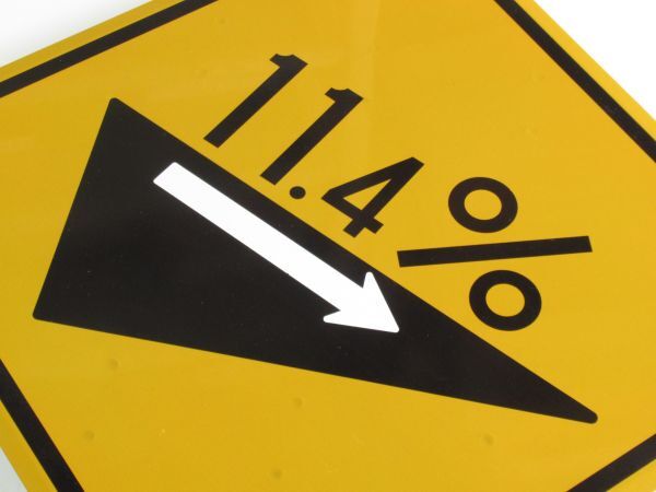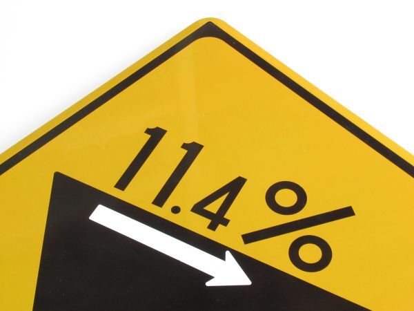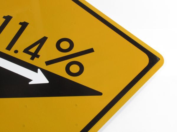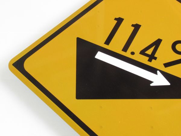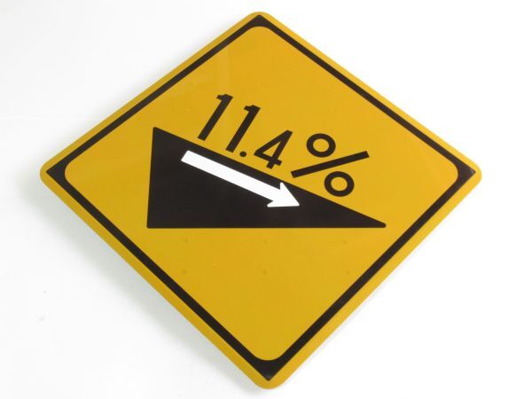 昭和レトロ 道路標識 本物「 勾配 11.4% 標識 」1個【タテ45cm×ヨコ45cm】アンティーク インテリア ガレージ RETORO 看板 サイン
