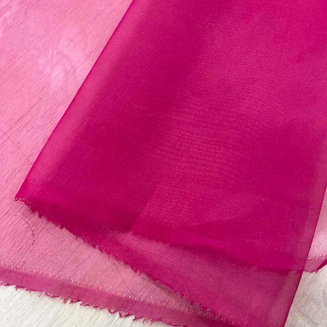値下げ1反売り!ローズピンク色の光沢控えめオーガンジー(58m)