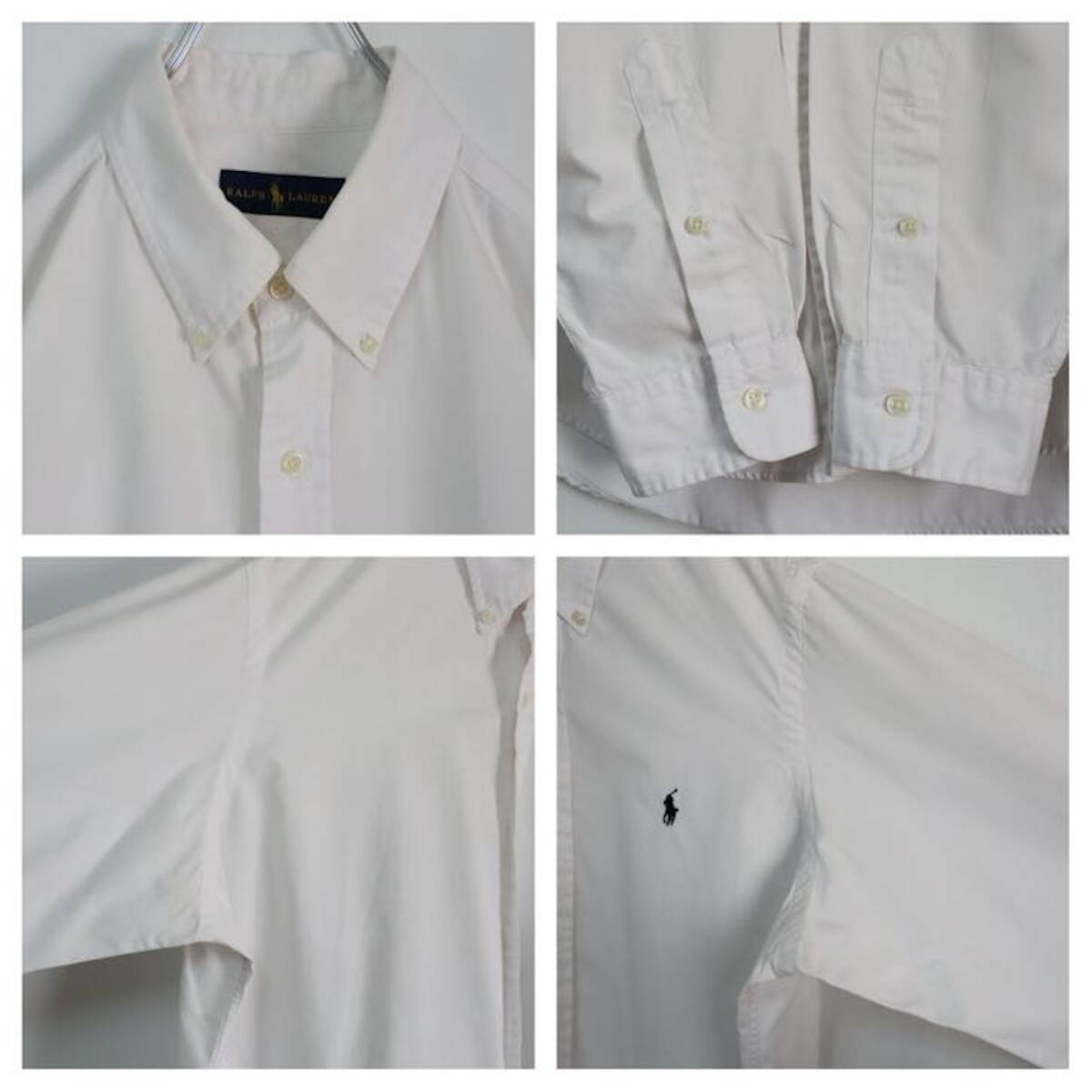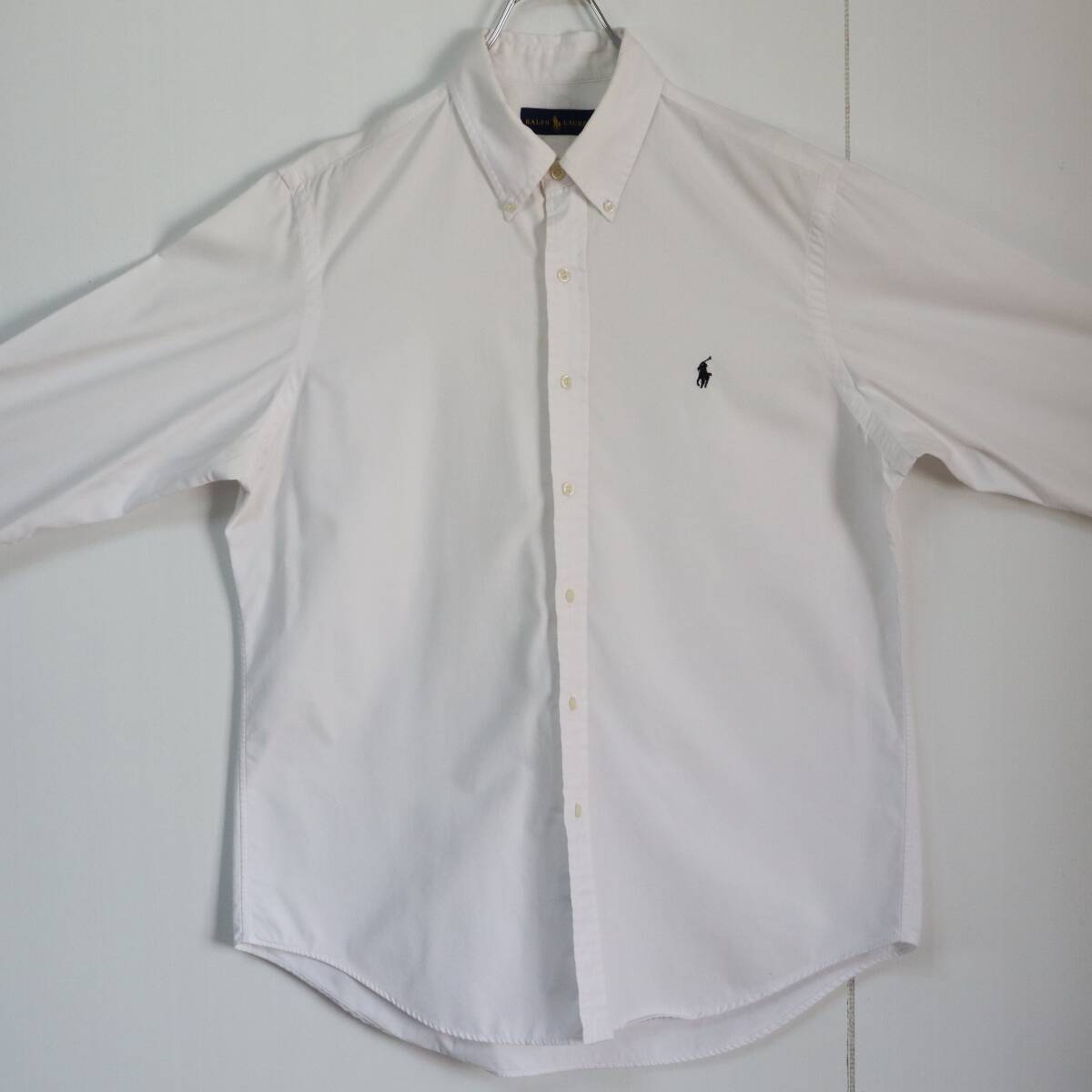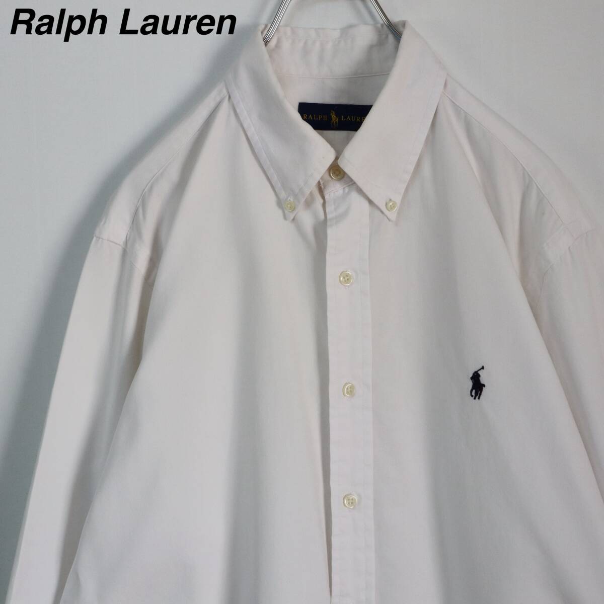 【大人気】ラルフローレン BDシャツ 白シャツ 刺繍ロゴ Lサイズ 無地 長袖