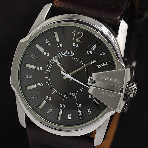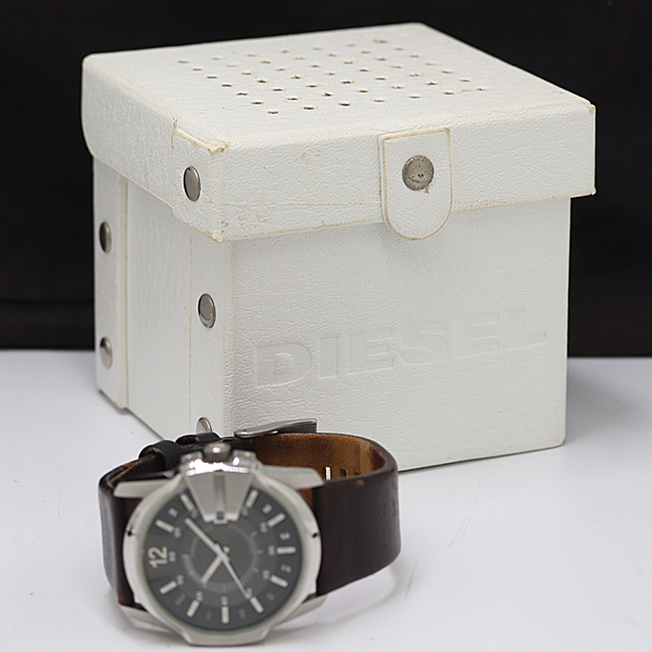 1円 箱付 稼働 良品 ディーゼル DZ-1206 QZ グレー文字盤 メンズ腕時計 0044000 9MGT MST