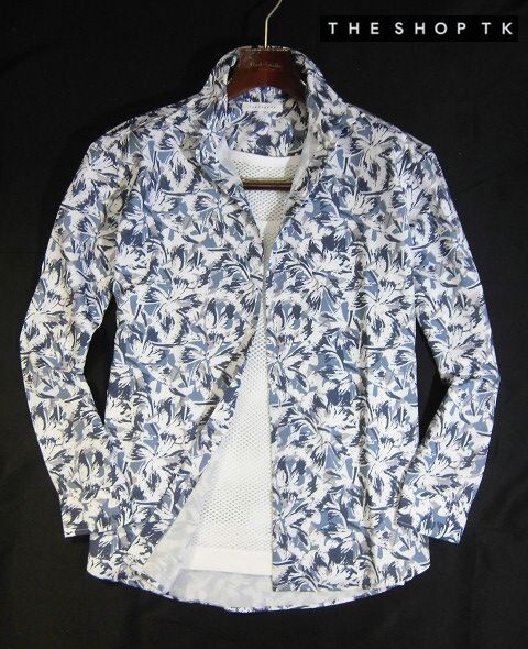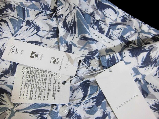 J水10190新品▼ タケオキクチ THE SHOP TK プリント 長袖シャツ XL 白系 総柄デザイン シャツ ドライポリ素材 吸水速乾