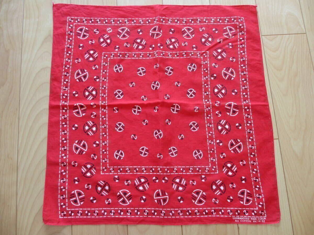60S~70S 60年代~70年代 ヴィンテージ ビンテージ バンダナ 赤 インディアン 紋章 小紋 渦巻 クロス 十字架 ハンカチ ストラップ アメリカ