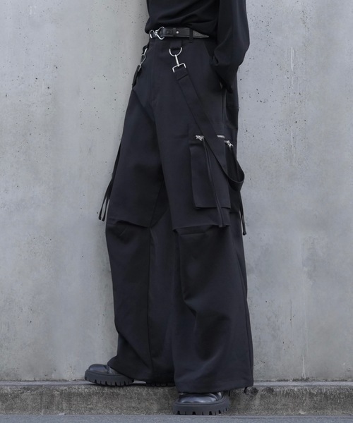 キーワード:カーゴパンツ メンズ ストレート ハイウエスト フルレングス ワイドパンツ 無地