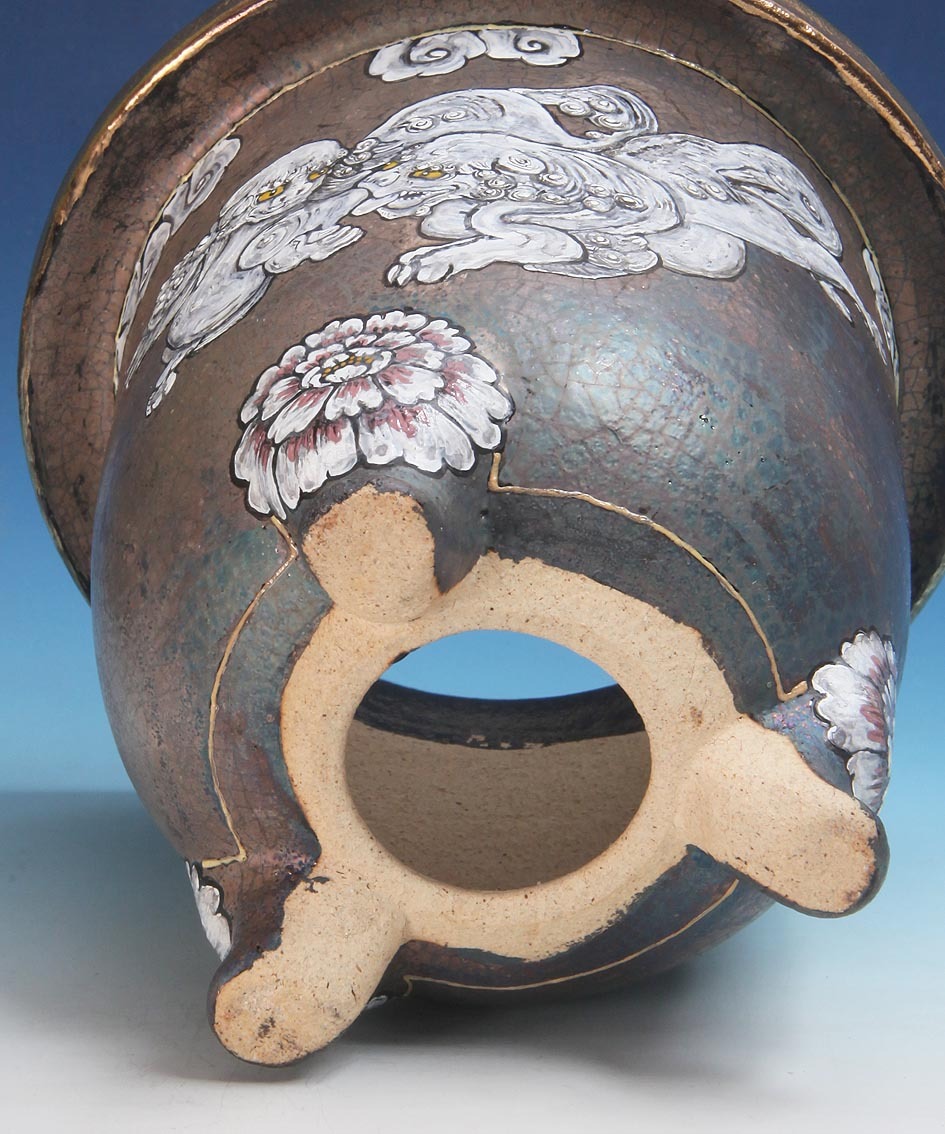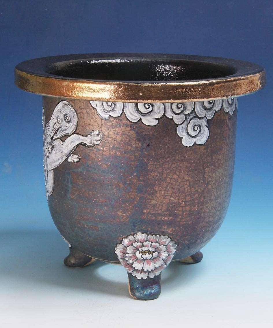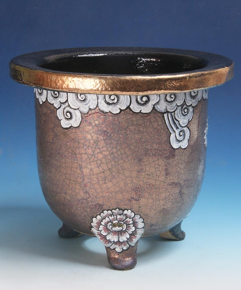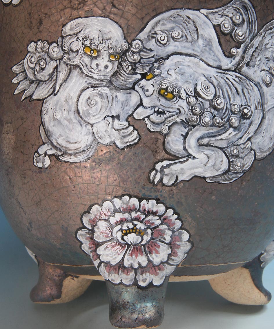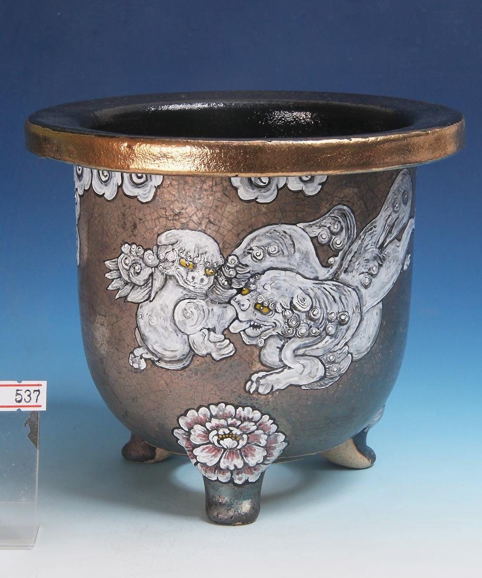 №537 錦鉢 「唐獅子牡丹」京楽焼 観音竹鉢6.0号鉢 奏山 #蘭鉢 #万年青鉢