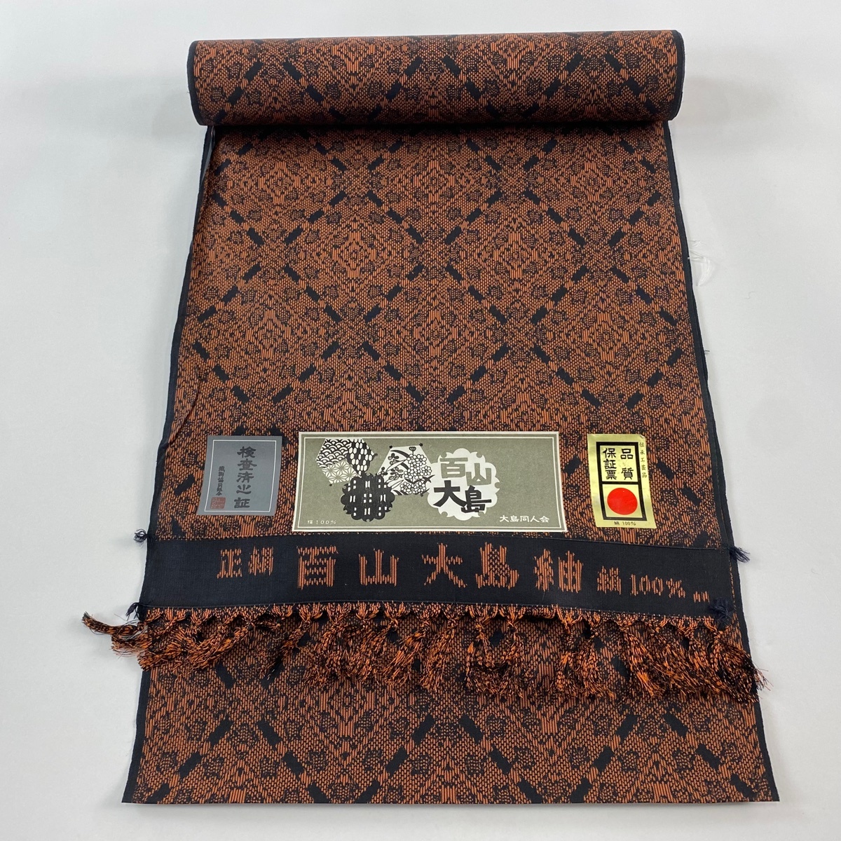| 反物 秀品 紬 証紙 菱 華文 赤茶 正絹 【中古】 |