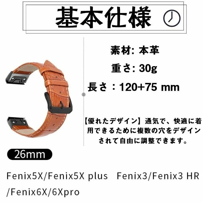 Garmin Fenix5x/Fenix5x plus Fenix3/ Fenix3 HR/Fenix6x/ 6xpro 26mm 対応 交換 バンドアクセサリー 腕時計バンド【ダークブラウン/26MM】