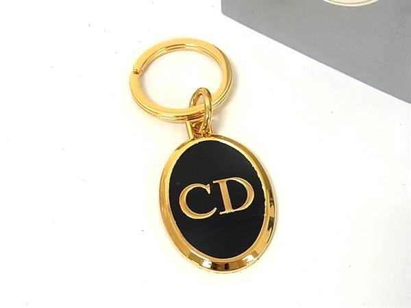 ■極美品■ ChristianDior ディオールCDロゴ キーホルダー キーリング チャーム ブラック系×ゴールド系 DD9261