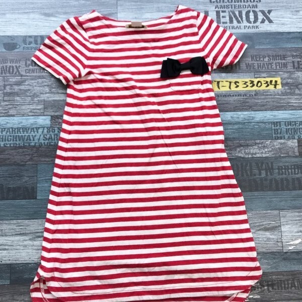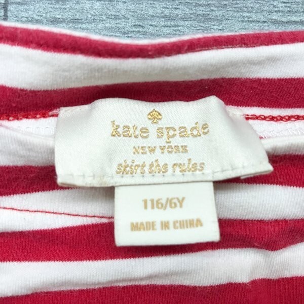 kate spade ケイトスペード キッズ リボン付き ボーダー ワンピース 116/6Y 赤白 です。