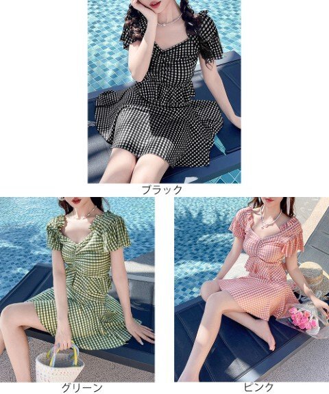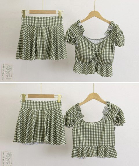 ガーリーなチェック柄が特徴のセパレートタイプのスイムウェアです。