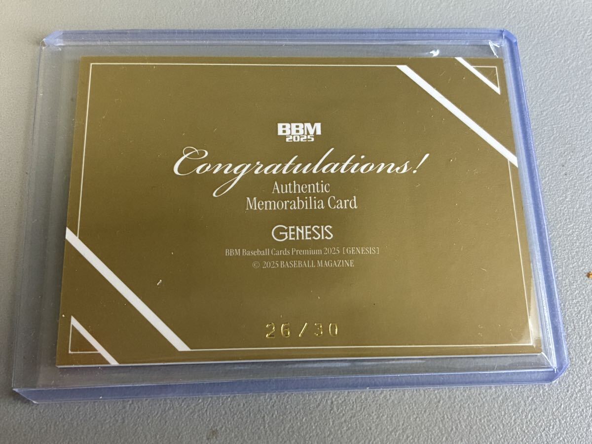 森下暢仁 2025 BBM GENESIS ビッグパッチカード /30 広島東洋カープ 3色良部分 ジェネシス ジャージカード