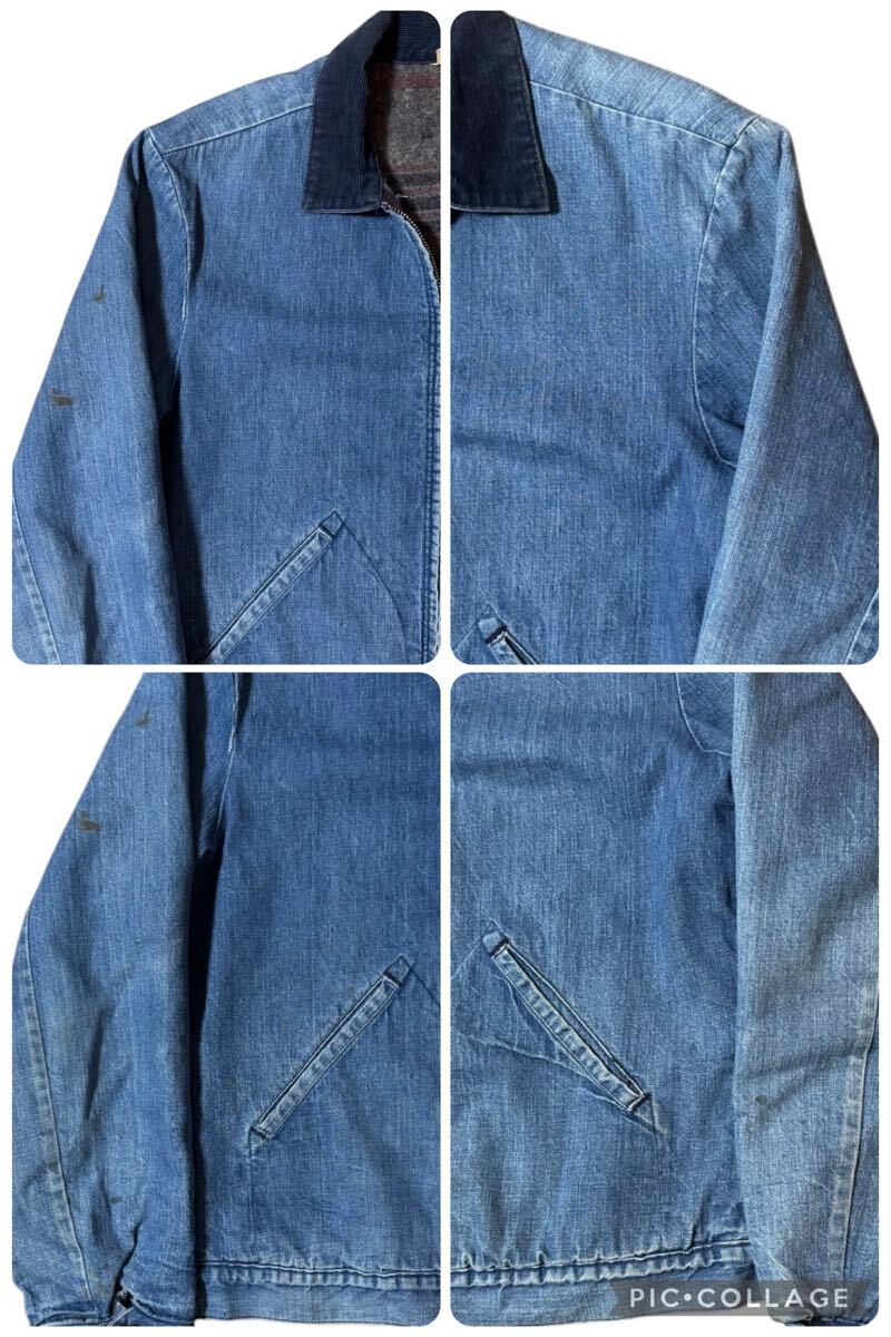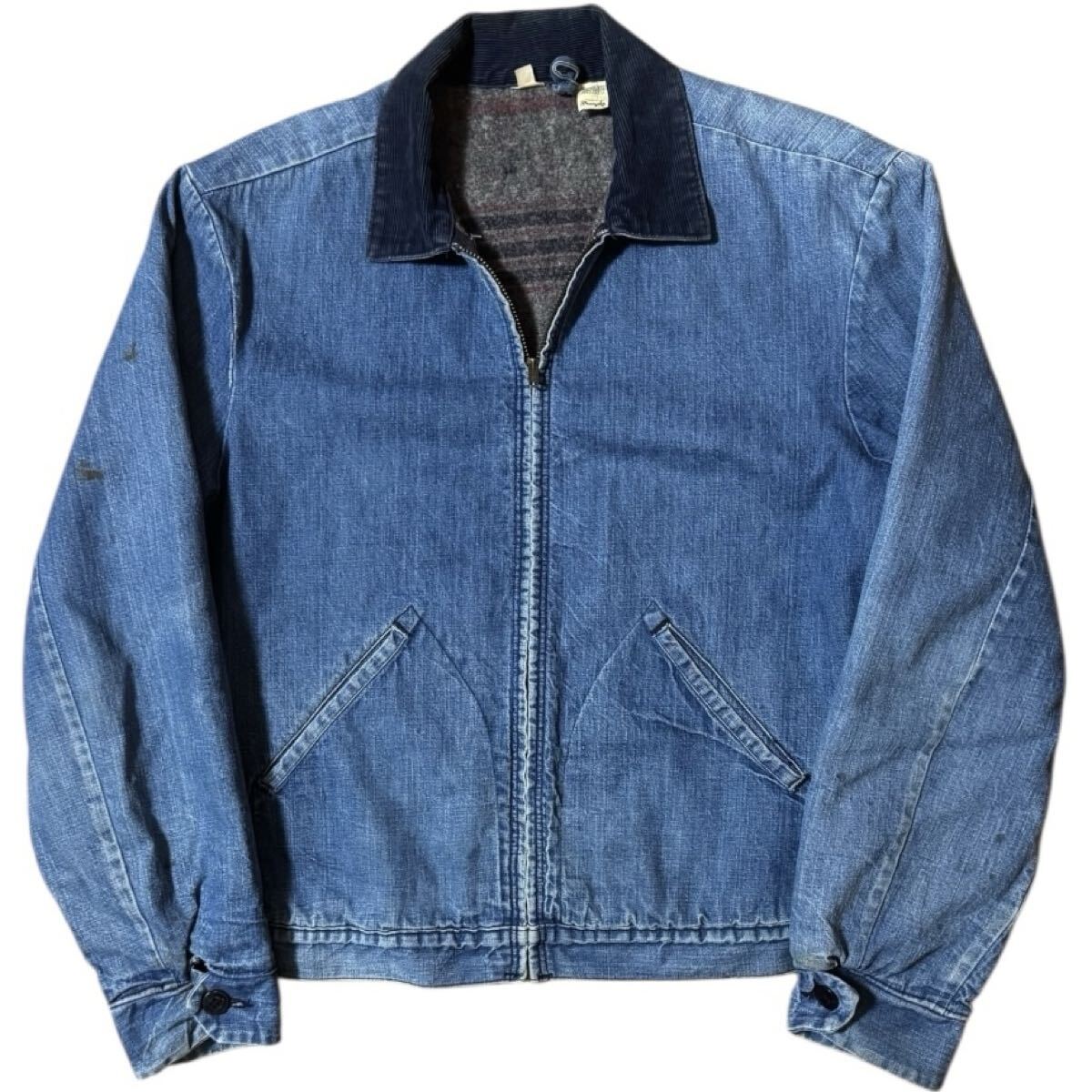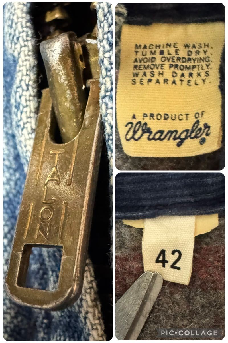 【雰囲気系/サイズ42】60s〜70s初期 Wrangler ビンテージ デニムワークジャケット ブランケットライナー 棒TALONジップ コーデュロイ襟 短丈 ブルゾン フェード