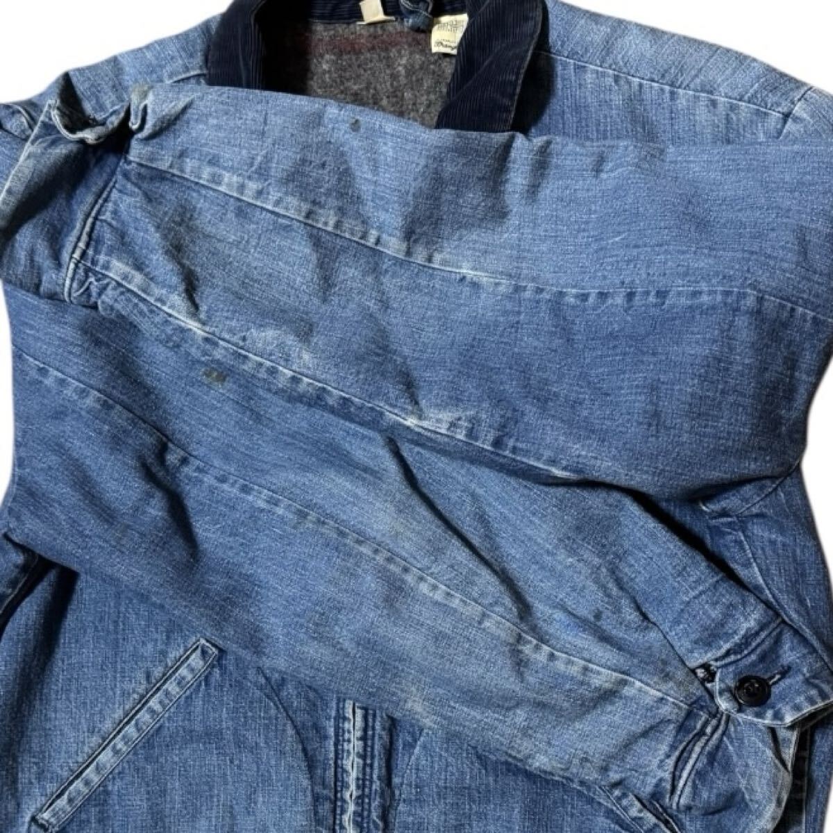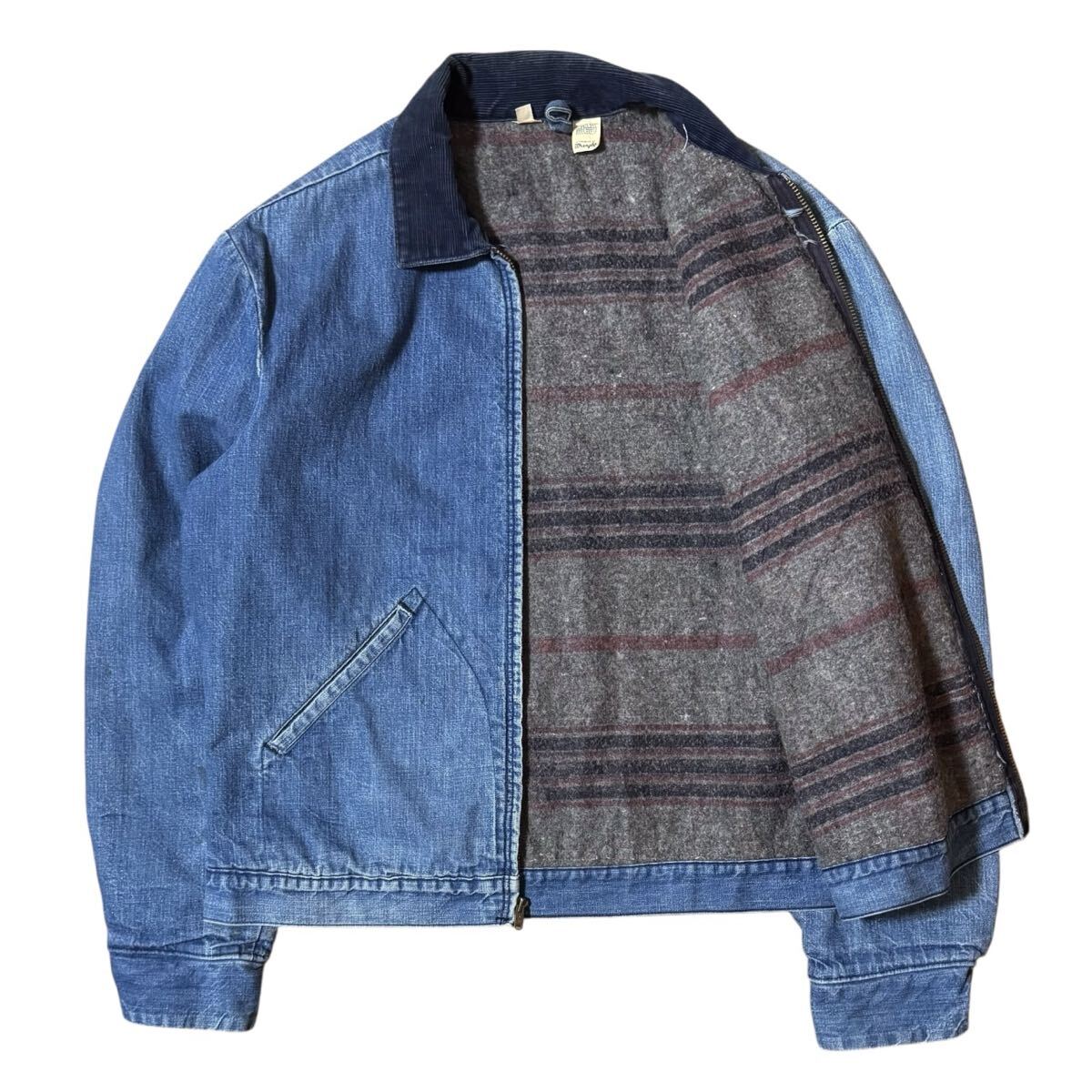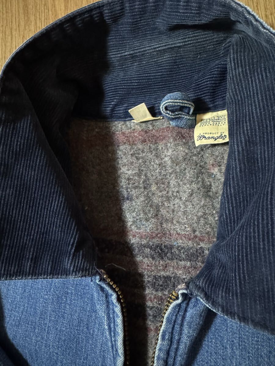 【雰囲気系/サイズ42】60s〜70s初期 Wrangler ビンテージ デニムワークジャケット ブランケットライナー 棒TALONジップ コーデュロイ襟 短丈 ブルゾン フェード