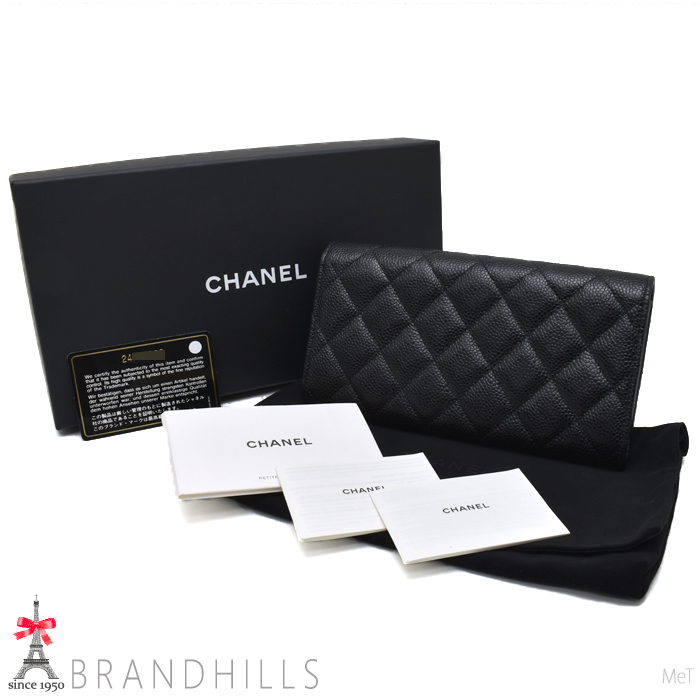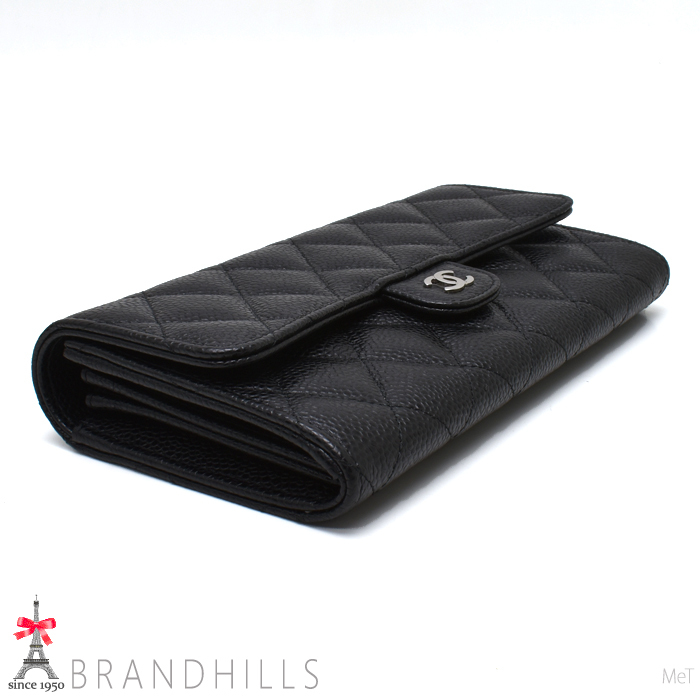 シャネル 長財布 クラシック ロング フラップ ウォレット マトラッセ キャビアスキン ブラック A80758 CHANEL 美品