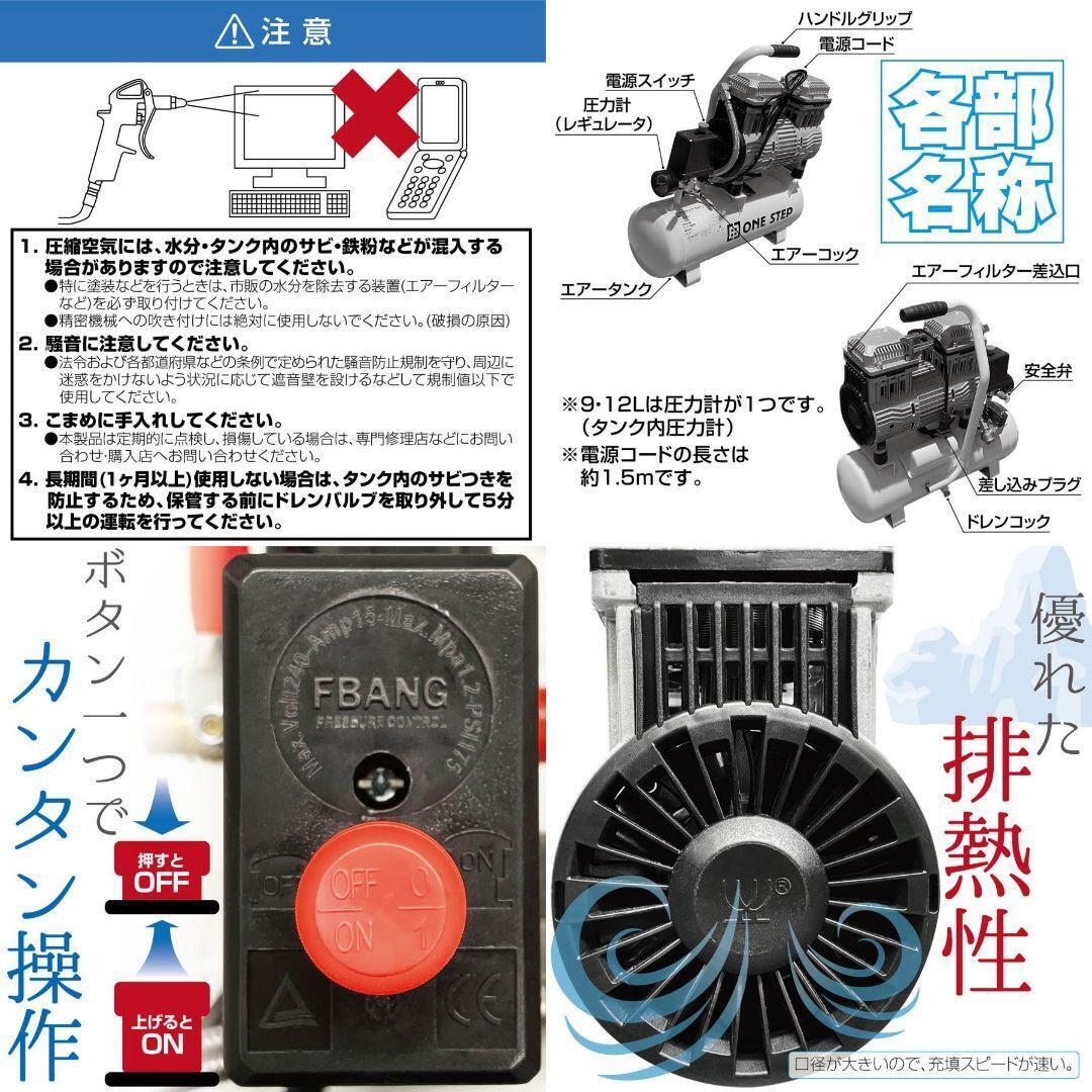 小型・軽量・低騒音!優れた排熱性能で空気充填スピードが速い。分かりやすいダイヤル付き・スイッチ一つでカンタン操作が可能です。 小型設備の使用や家改造工事などの使用にピッタリ。