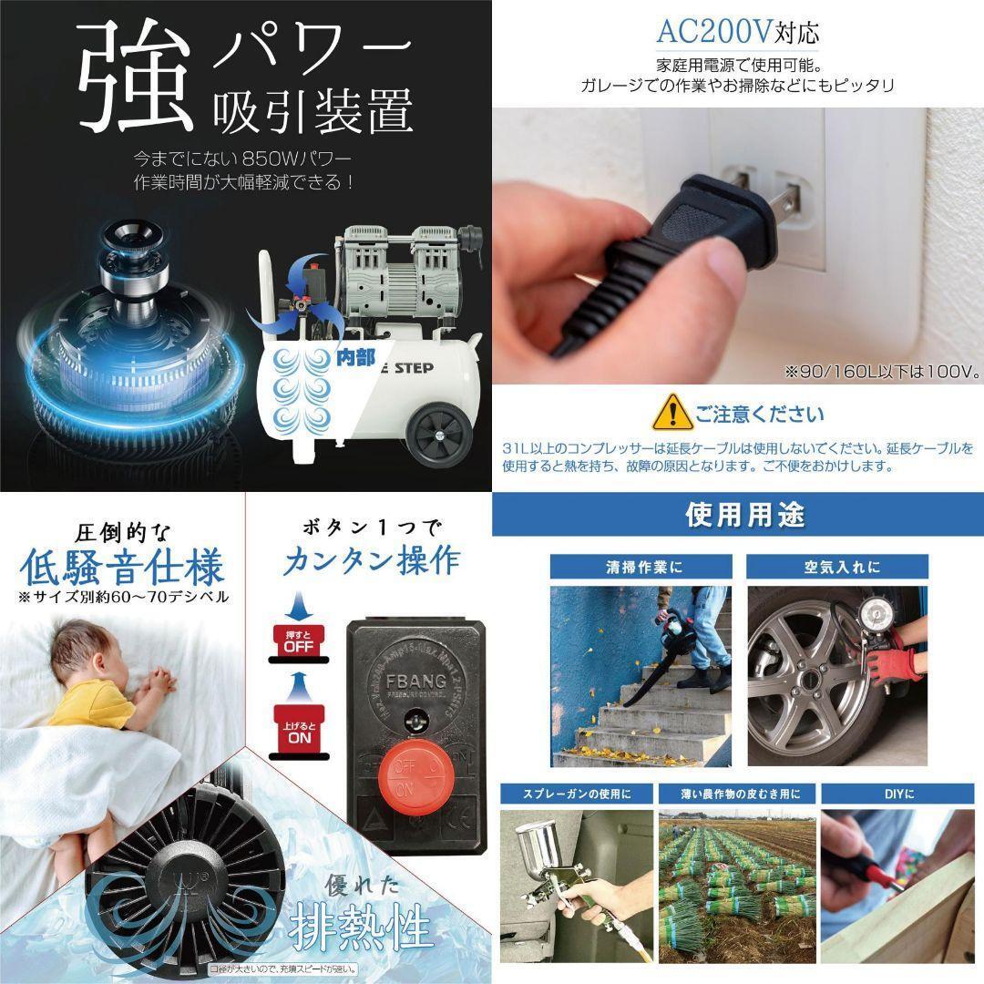 エアーコンプレッサー 160L単相 200v 静音 オイルレス
