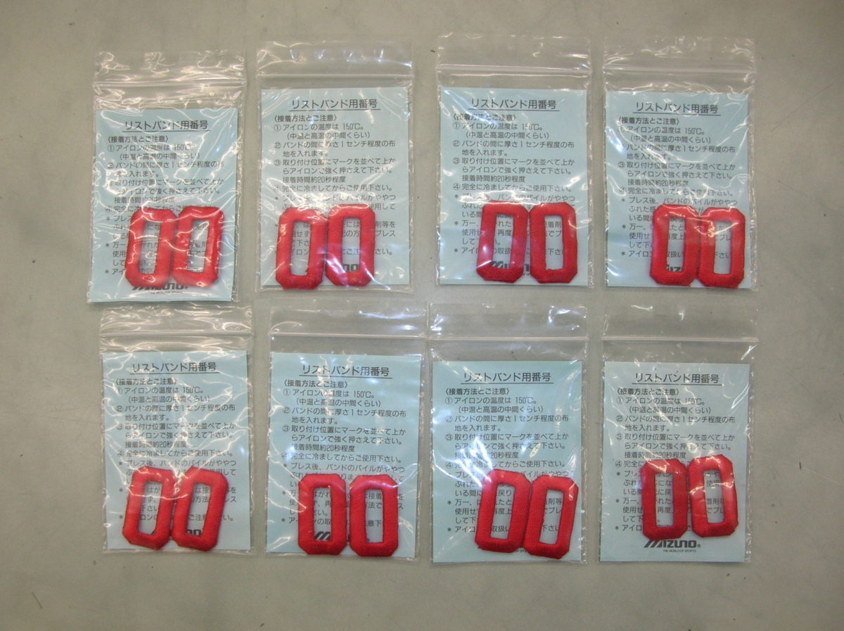 ミズノ【リストバンド用番号2枚入り(0)8セット★レッド】刺繍ワッペン★アイロンで簡単圧着★MIZUNO