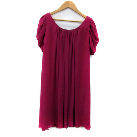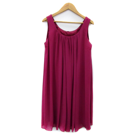デビュー ド フィオレ レッセパッセ パーティードレス ワンピース 半袖 ノースリーブ ひざ丈 2WAY シースルー 38 マゼンタ レディース