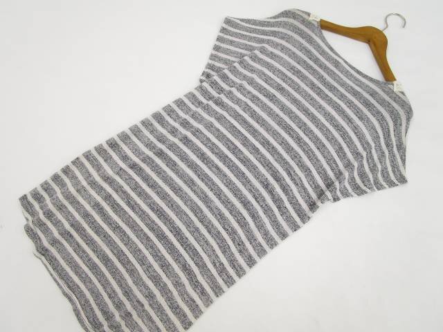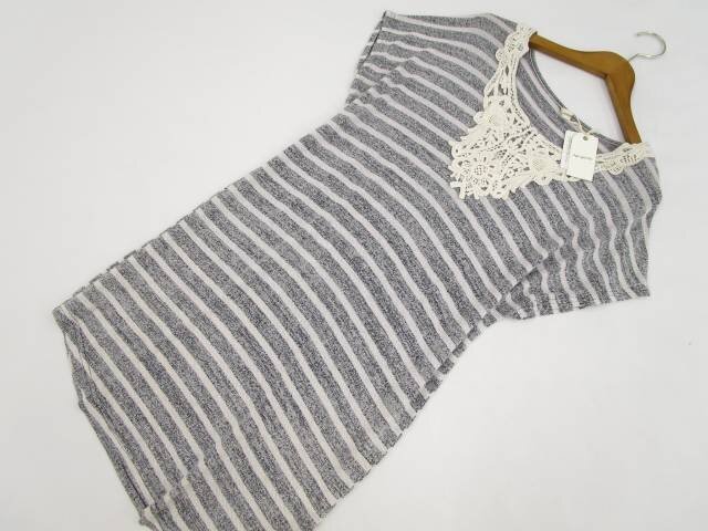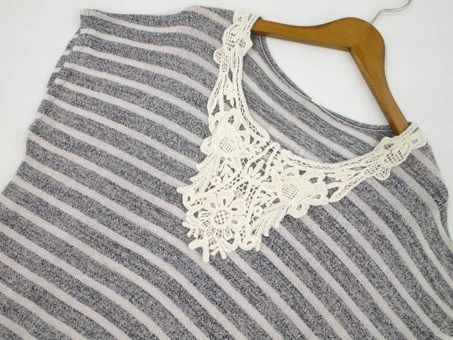フレンチスリーブ 半袖 ラウンドネック ニットチュニック F グレー杢×グレー ボーダー柄/アイボリー 花柄 【メール便可】