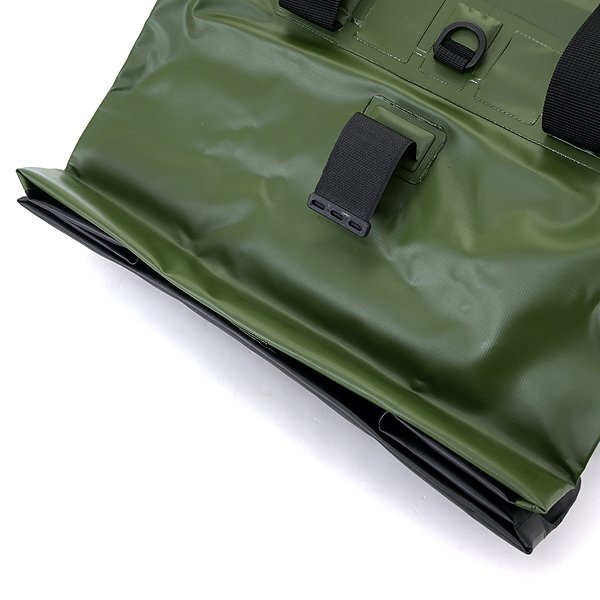 新品 未使用 紙タグあり ※防水を考慮した素材や製造方法を用いておりますが、防水性を保証するものではございません。 また、収納物の重さは【5kg(あくまで目安です)】以上にならないようにご注意ください※ 容量:約24L 縦43cm 横38cm 幅20cm 生地:PVCターポリン テープ:ポリプロピレン バックル:ポリアセタール カーキ |