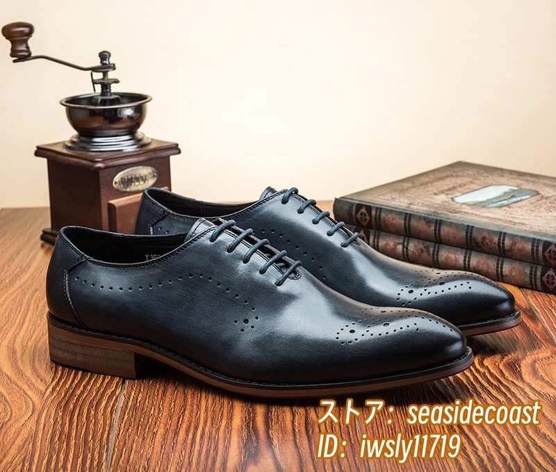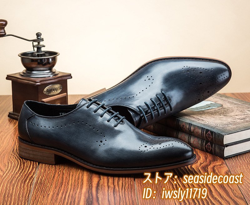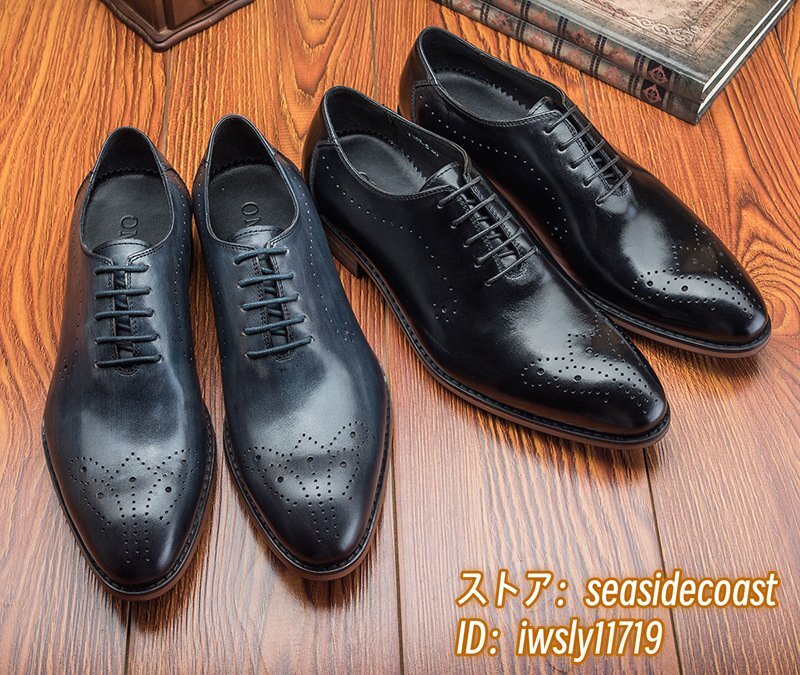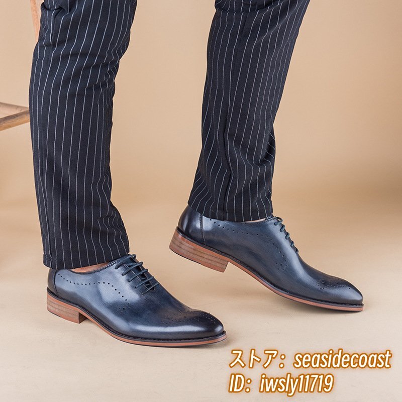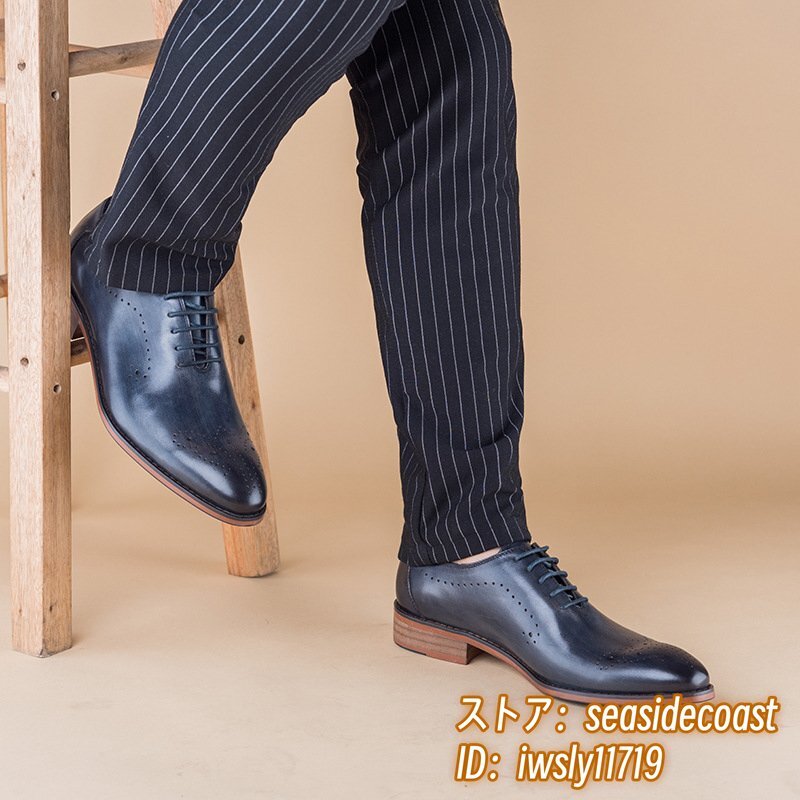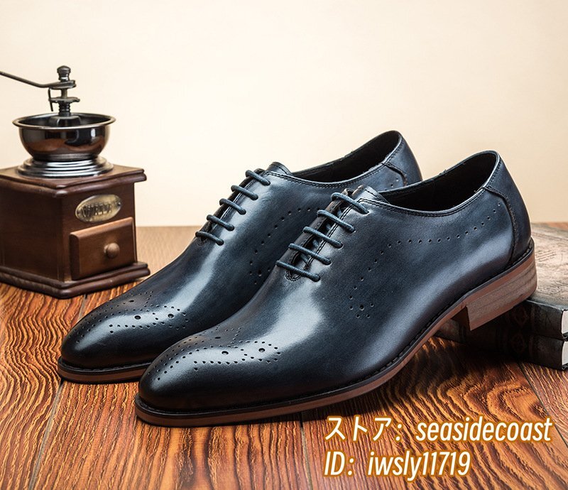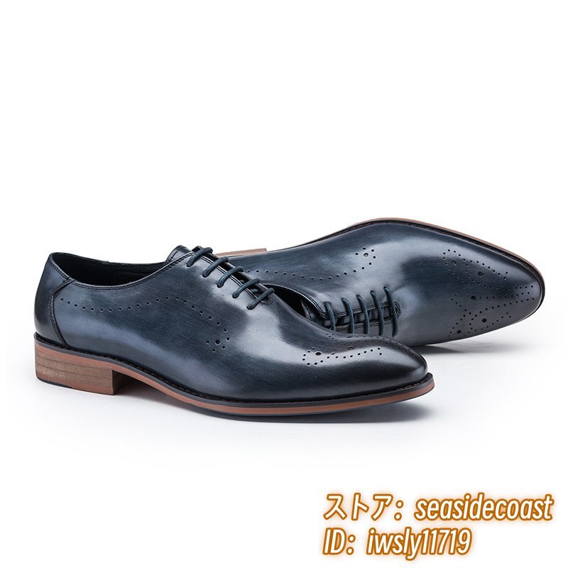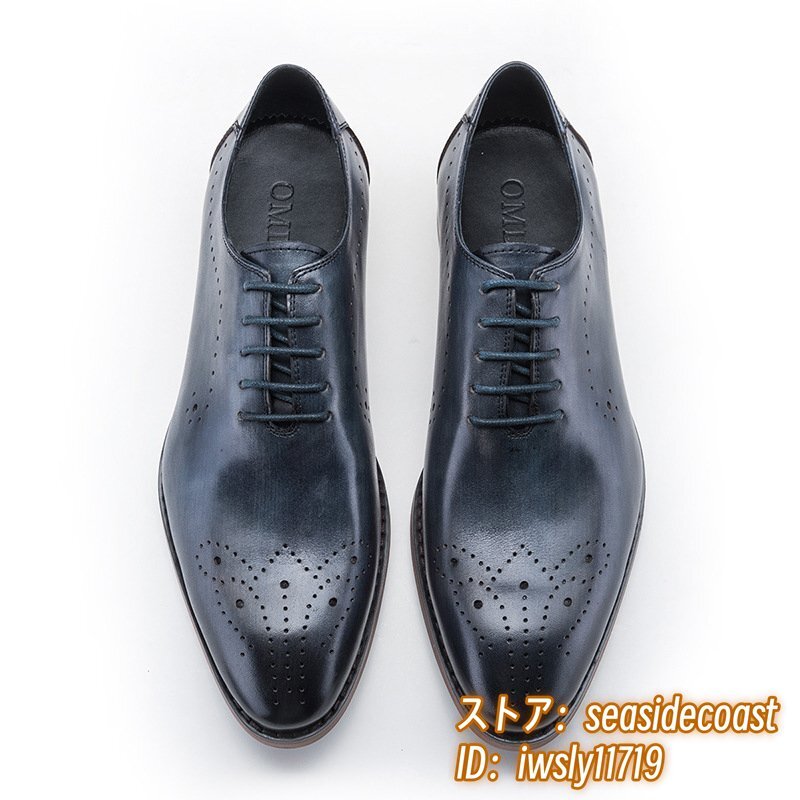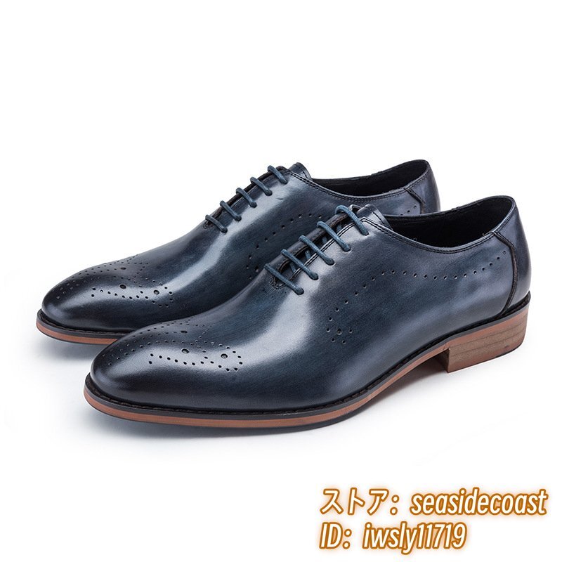 最上級◆定価9万 全本革 レザーシューズ 牛革 ビジネスシューズ 職人手作り 紳士靴 手塗仕上げ 高級牛革 革靴 フォーマル ブルー 27.5cm