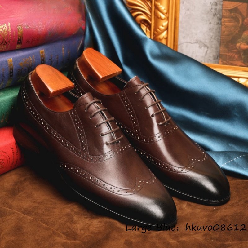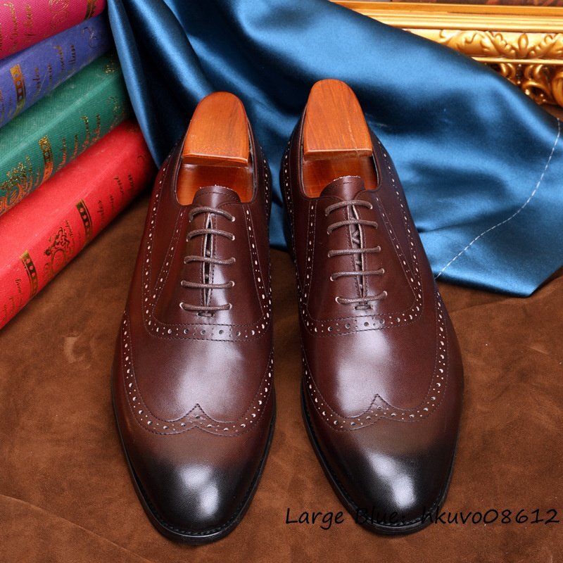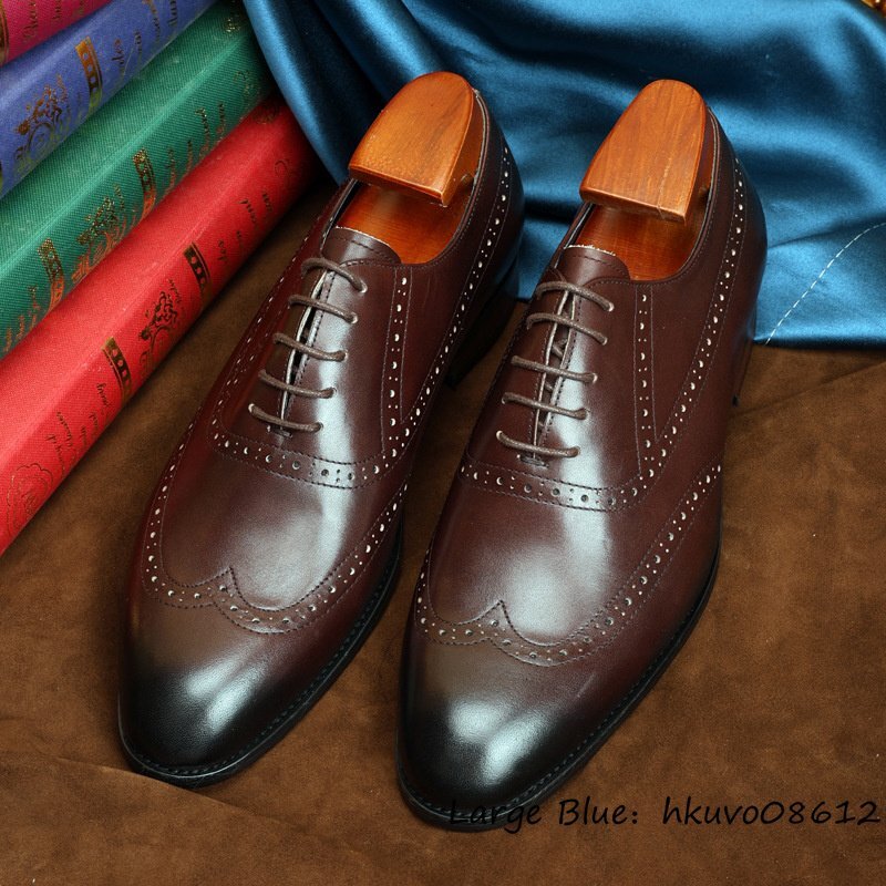 入手困難■定価9万 ドレスシューズ メンズ 本革 レザーシューズ 職人手作り 彫り ビジネスシューズ 本牛革 革靴 紳士靴 珈琲色 25.0cm