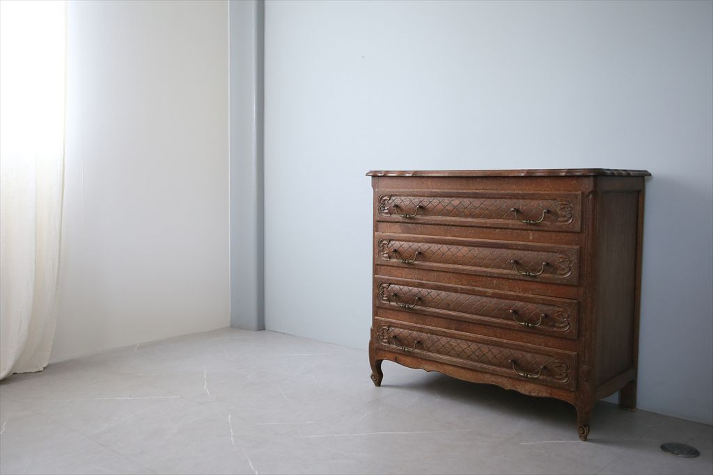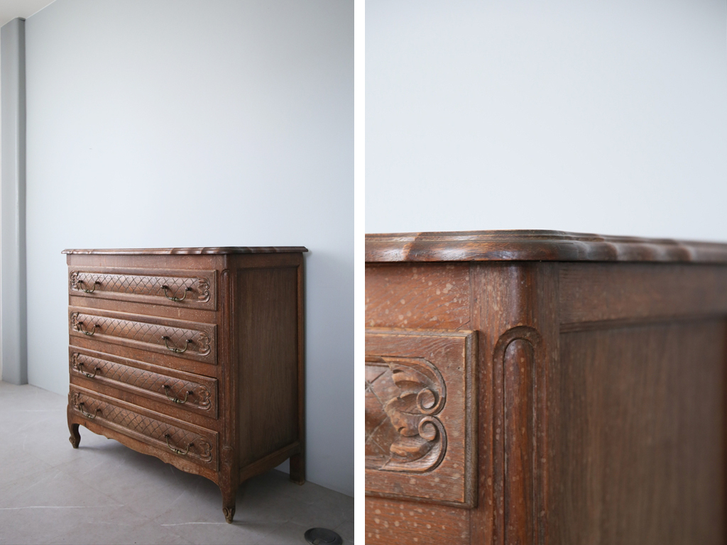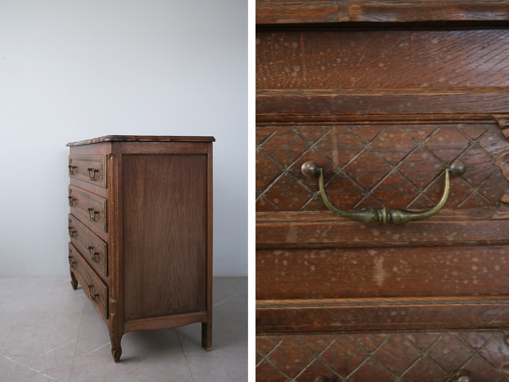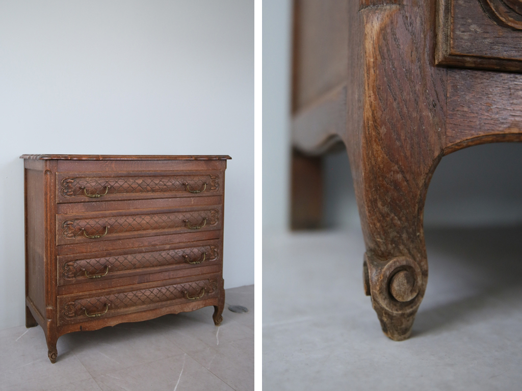 フランスの田舎で見つけた猫脚の4杯ドロワーです。