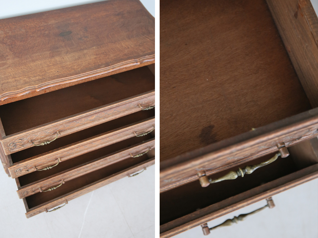 フランスアンティーク◇猫脚4杯ドロワーc/木製チェスト/ネコ足タンス/飾り棚/テーブル机/店舗什器/ディスプレイ台/フレンチビンテージ家具