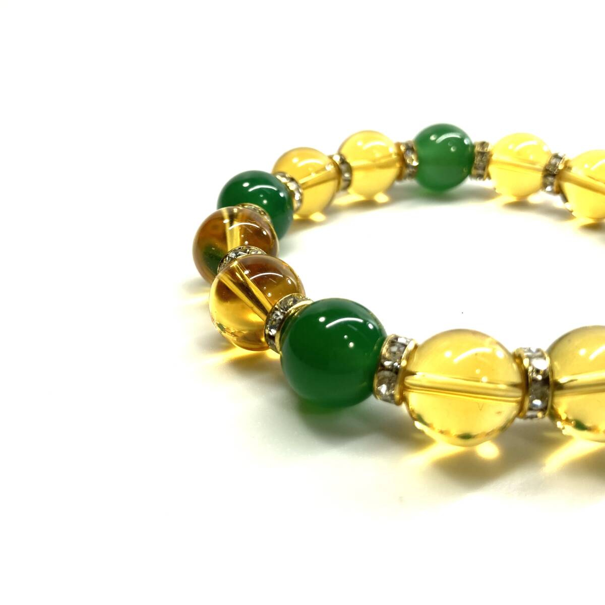 緑瑪瑙&シトリン パワーストーン ブレスレット 天然石 (ゴールド) 12mm 金運 仕事運 メンズ・レディース 開運 浄化 数珠ブレス