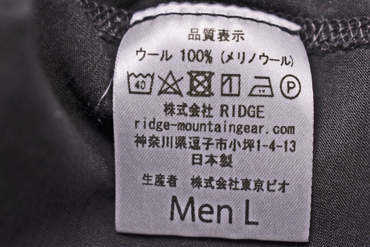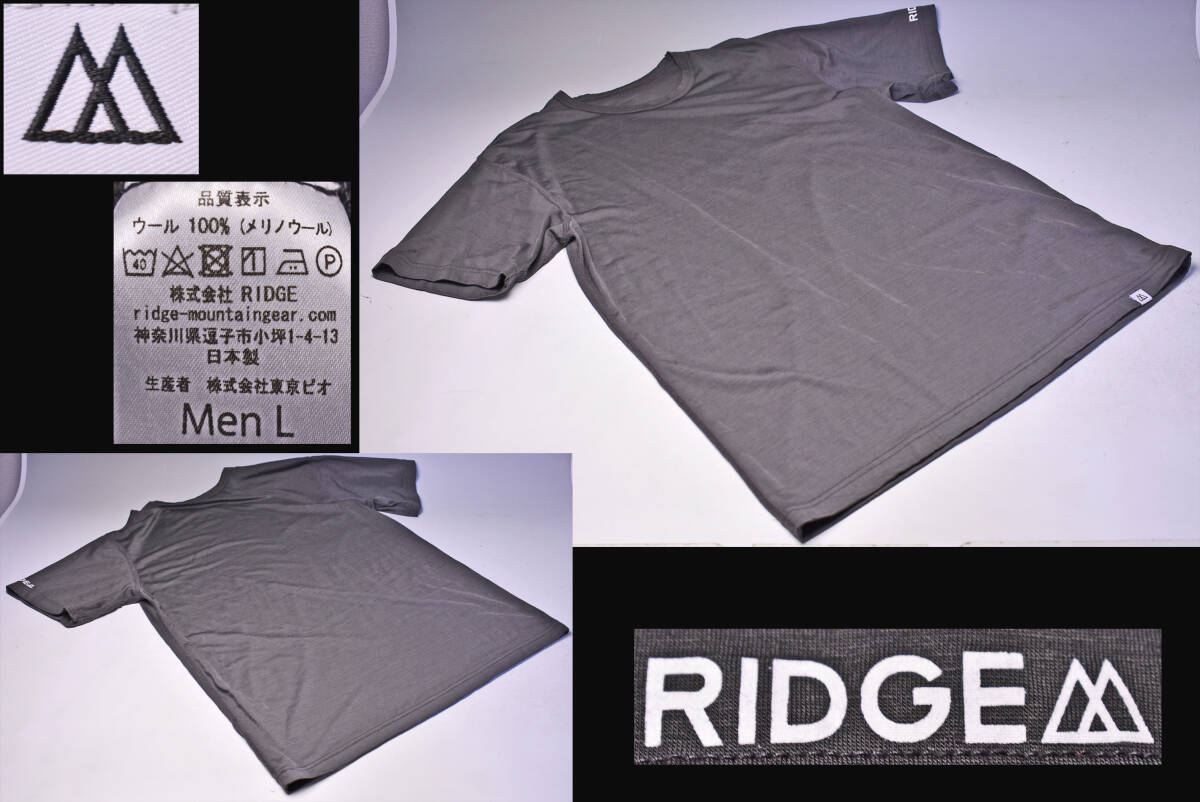 RIDGE MOUNTAIN GEAR ★ メリノ ベーシック S/S シャツ ★ Tシャツ ★ Lサイズ ★ チャコール ★ リッジマウンテンギア ★ 半袖 ★ 中古品