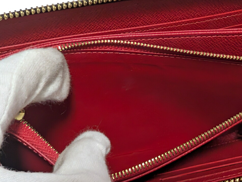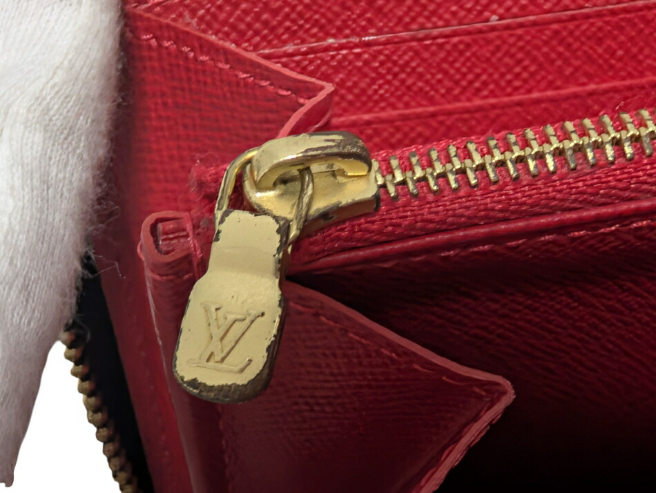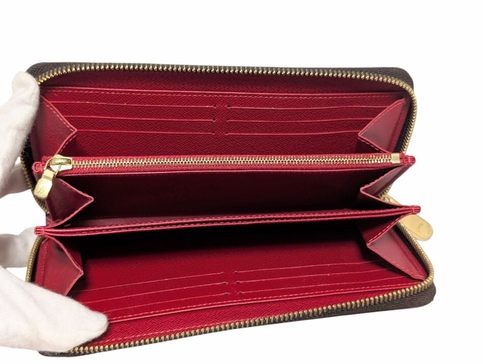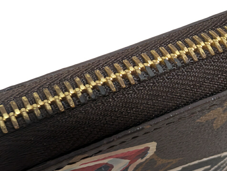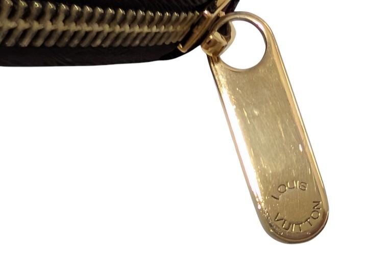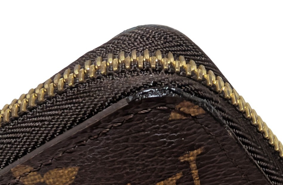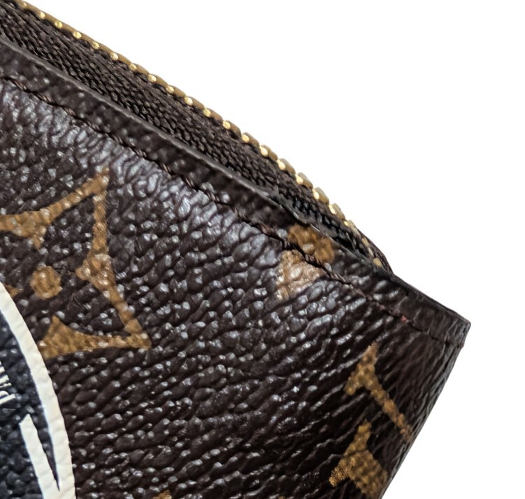 状態・・・ ファスナーにくすみ箇所があります。ファスナートップの金具にスレや小傷があります。縁にスレ、モノグラム生地に少々シワ、内部は綺麗な状態でカードポケットにも目立った開きはなく、コインケース内部も綺麗な状態です。