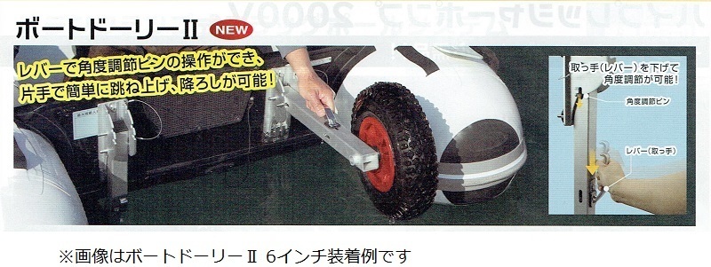 品名:ボートドーリー Ⅱ 8インチ 商品コード:30E0063 全長:810mm タイヤタイプ:ノーパンクタイヤ 8インチ 重さ(片側):3.8Kg タイヤ耐荷重(両輪):最大150kg シャフト材質:アルミ(アルマイト処理) ※※画像には一部イメージでタイヤタイプ違いの画像があります また、ボート等の画像がございますが付属しておりませんので御了承ください※※ ◇◆特 徴◆◇ ●ドーリーの最強モデル BMOジャパン製ドーリー ●アルミの鋳物製のため非常に強度が高く、FRPボートやアルミボートでの使用でも強度十分 ●シャフト部の取っ手で簡単に跳ね上げ、降ろしを可能としています ●シャフトは軽量なアルミ製で耐久性を高めるためにアルマイト処理済み ●ノブネジと専用金具により、取付金具ごとをボートから簡単に脱着することが可能 そのためボート収納時に取付金具が邪魔にならずまたボートをキズつけません ◆AFBOAT 国内大手インフレータブルメーカーやマリンメーカー、船外機メーカー、プロフィッシングガイド、バスプロなどそれぞれの分野の一流スタッフが制作に携わって企画を行った。フィッシング専用のボートやマリン用品のブランドです。大手量販店では販売を行わず一部のフィッシング専門店のみ専売のブランドです。協力メーカーは下記の数社を始め多岐にわたります。 ●ジョイクラフト、アキレス、リガーマリン、葵ソニック、BMOジャパン・・・・・etc | ||||