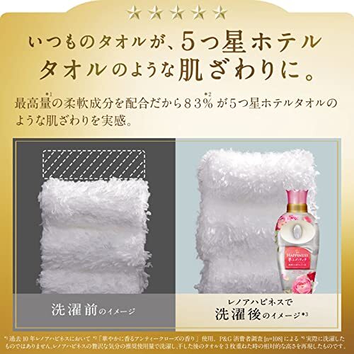 説明商品紹介通常※の4.7倍 普段着がまるでシルクタッチに ローズとピオニーが主役の女性らしく甘い香りで、しあわせな気分にみたされる。5つ星ホテル推奨^ 普段着がまるでシルクタッチに 肌触りも香りも5つ星 「W」の贅沢 高級ホテルタオルのような肌触り 極上*1 の香り汗をかいても防臭 部屋干しOK*2 赤ちゃん用衣類もやわらかく 静電気を抑制 ※レノアハピネスつめかえ(400mL) ^詳しくはウェブへ *1 レノアハピネス史上 *2 いい香り 柔軟剤原材料・成分界面活性剤(エステル型ジアルキルアンモニウム塩)、安定化剤、香料 ■ご注文からお届けまで ※トラブル防止のため入札、落札前に必ずご一読をお願い致します。 落札後のお客様都合でのキャンセルはお受けできませんので、予めご了承ください。 1.ご注文 : ご注文は24時間受け付けております。 2.注文確認 : ご注文時、オーダーフォーム等必要事項を入力お願い致します。 3.入金確認 : 前払い決済をご選択の場合、ご入金確認後、配送手配を致します。 4.出荷 : 配送準備が整い次第、出荷致します。配送業者、追跡番号等の詳細をご連絡致します。 5.到着 : 出荷後、1-3日で商品が到着します。 ※商品の到着までは、決済確認後、3-7営業日でお届けとなります。 ※離島、北海道、九州、沖縄は遅れる場合がございます。ご了承下さい。 ※代引の場合、手数料として660円頂きます。 商品管理、在庫管理は行っておりますが、商品の不具合等でお届け出来ない場合は、 銀行口座へ振込返金となりますので、予めご了承いただきますようお願い申し上げます。 手続き削減の為、こちらからは発送完了までご連絡を行なっておりません。 原則、電話対応はしておりませんので、ご質問等はお問い合わせ、またはメールにてお願い致します。 土日祝祭日はご質問や落札されても商品発送等の、対応ができない日もございます。 予めご了承ください。 | ||