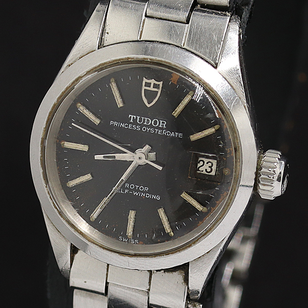 1円 稼働 チュードル プリンセス オイスターデイト 7600/0 765137 AT/自動巻 ブラック文字盤 レディース腕時計 5085300 8BGT SMZ