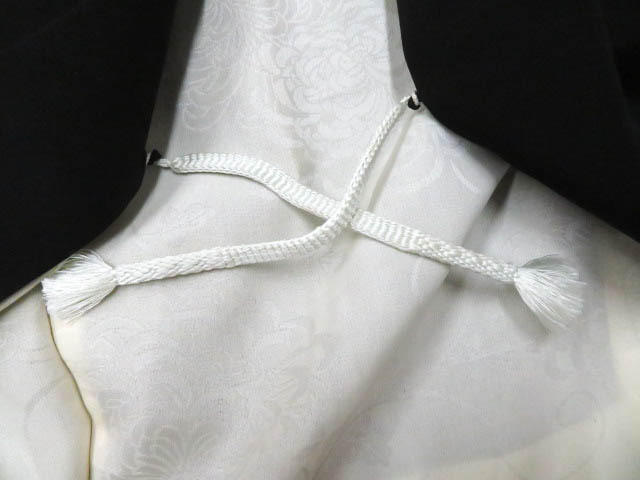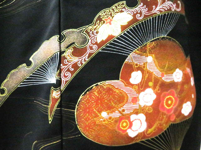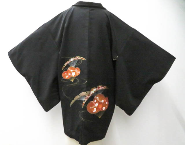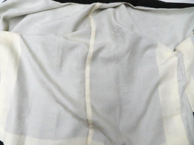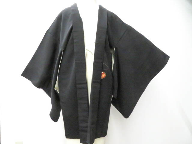 リサイクル商品のため、右胸や右後袖、羽裏に汚れがございますが着用可能なお品です。 地色は、黒色です。 1枚目の画像が近いお色かと思われます。 素材は正絹です。 |