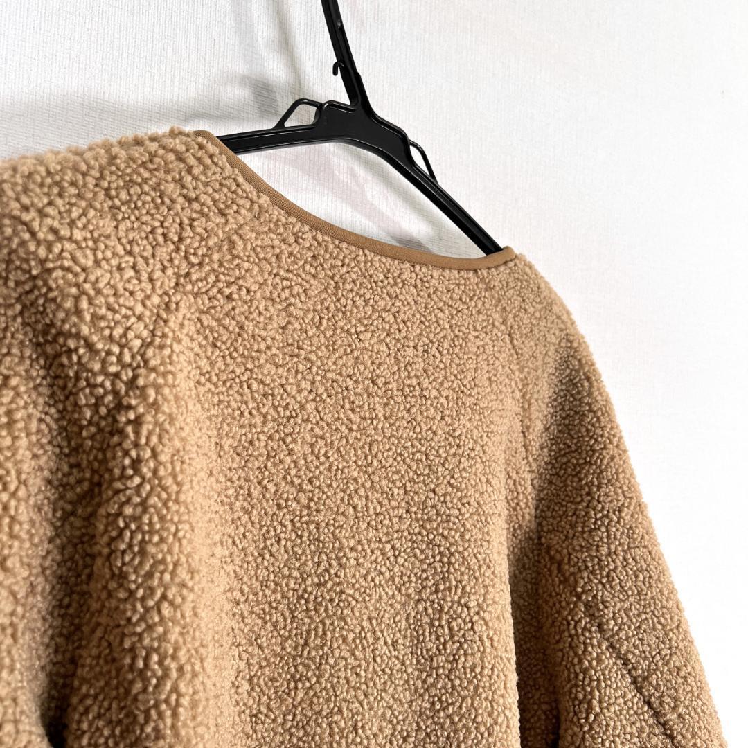 女性用のベージュ系 ライトブラウン系の長袖ボアフリースジャケット コート ジャンパー ブルゾン アウターです。中古品ですが目立つような傷や汚れもなくまだまだ使っていただけます。古着 ユニクロ UNIQLO